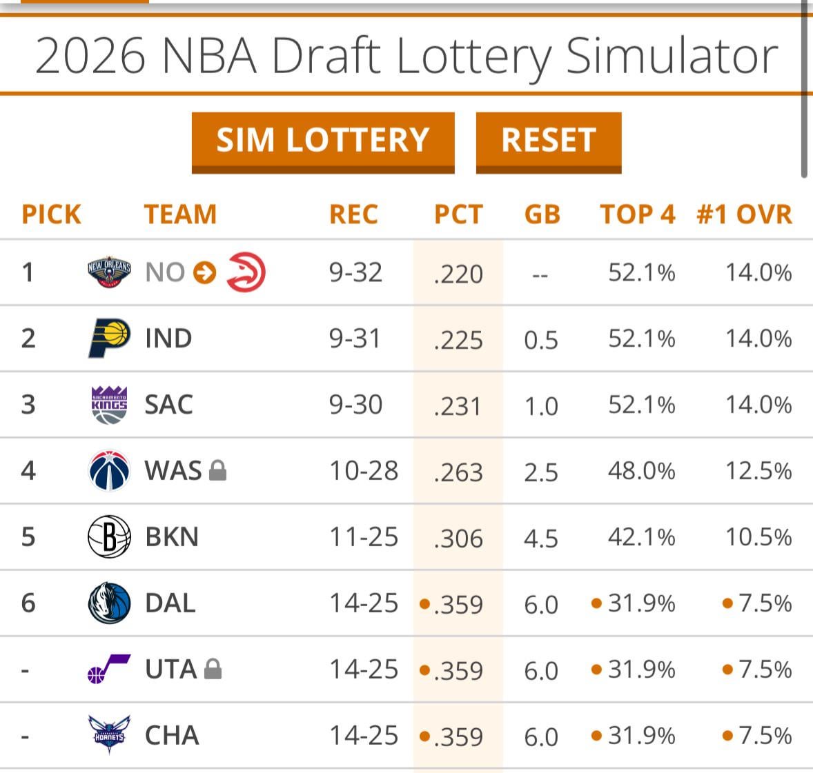 Looking at these records once the tank really rolls around I think the pels will jump the pacers, Kings, wizards and nets, and I think it might be close with the Mavs who will tank with AD out and the Jazz who are tanking veterans in the second half of the season.