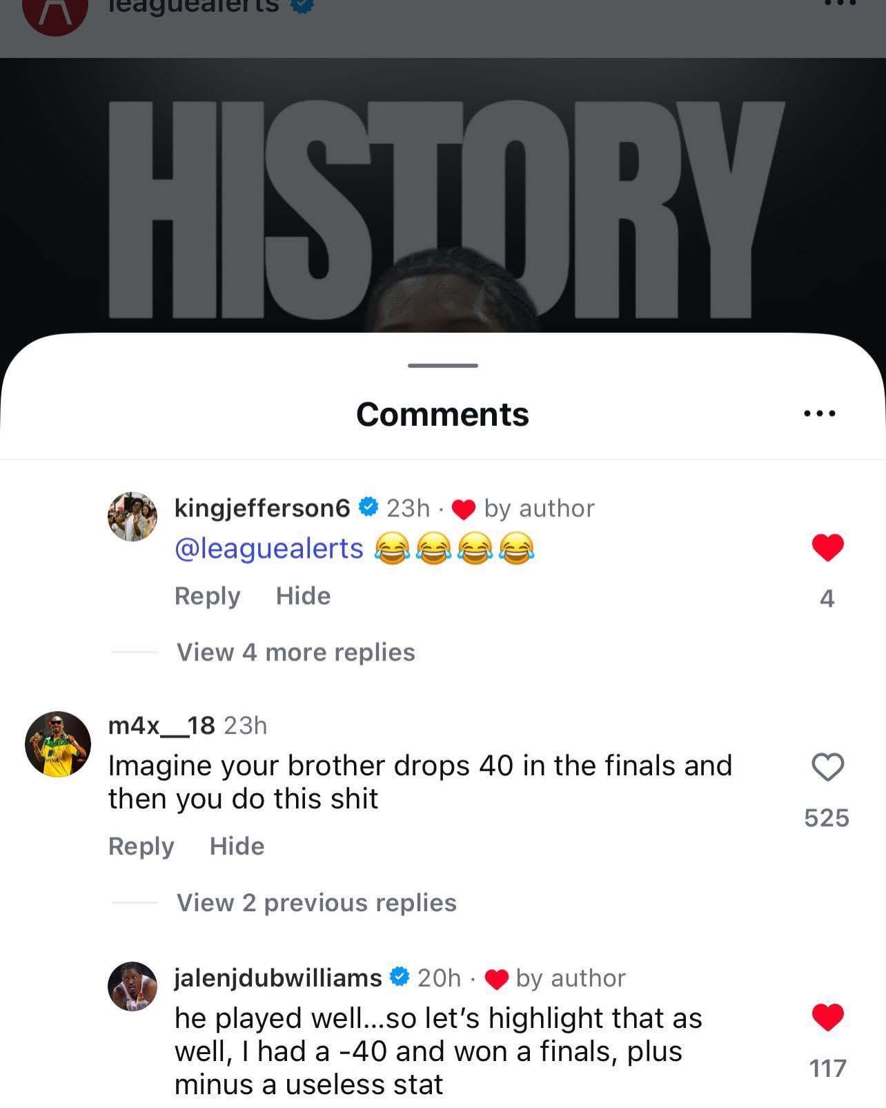 Jalen Williams, on his brother Cody, having the lowest plus/minus in NBA history of -60. Thoughts?