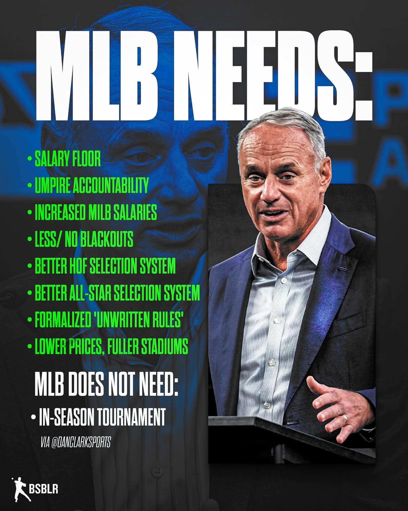 Ya we don’t need an in season tournament. But we definitely need a salary floor, maybe not a set dollar about but percentage of team revenue. And yes better all star selections.. Fans have proven they’re terrible at selecting all stars. Leave it in the hands of MLB Network. If they still want to include fans have them give a top 3 or 5 at each position for the fans to vote on. Or have pitchers selected by opposing teams or managers