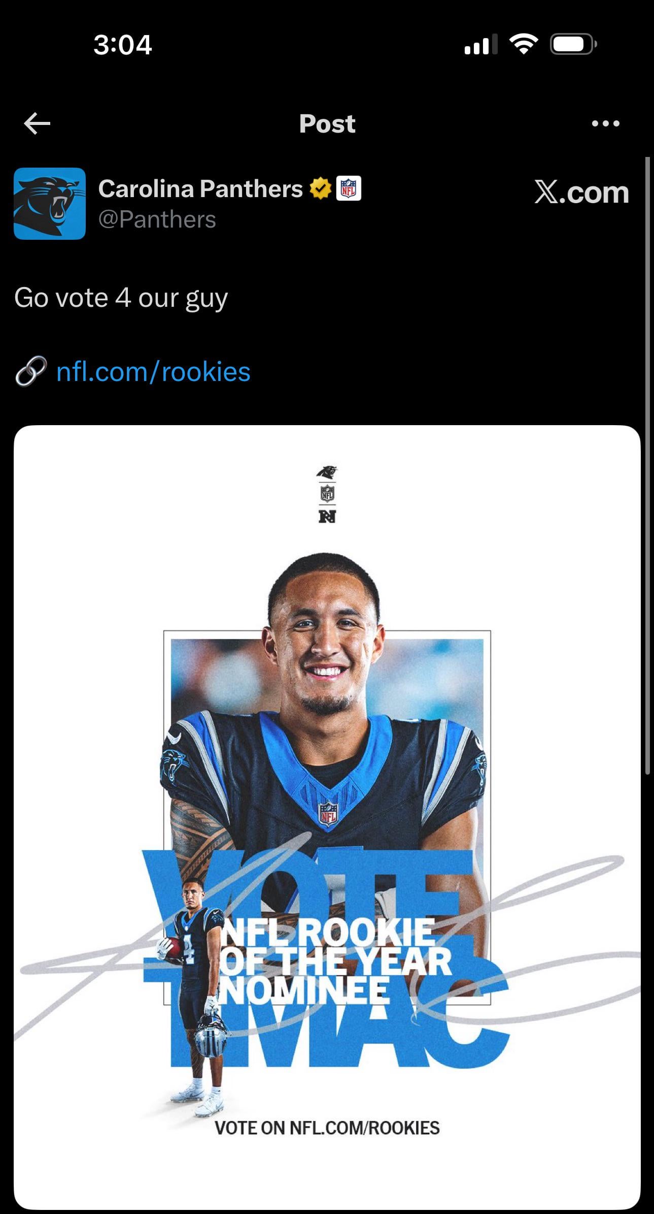 [Panthers] Go vote TMac for ROTY 16 comments [VOTING LINK](https://www.nfl.com/voting/rookies/rookie-of-the-year) just looking at the layout of this page, it feels very much like the league is gonna push Dart or Shough Voted a few times!! does that impact the actual result? Done thanks  Voted multiple times I lit that voting up Voted multiple times, saved post, will vote again later If anyone but TMAC gets it I will actually riot how bad would it be to write a script that auto votes for him  D-O-N-E Done! Set up auto click to vote him Million times T-Mac definitely deserves to win. Dart/Shough seem to be getting the media bias for being QBs. Unlimited voting? Weird, but whatever. Keep Pounding Leave a ReplyYou must be logged in to post a comment.