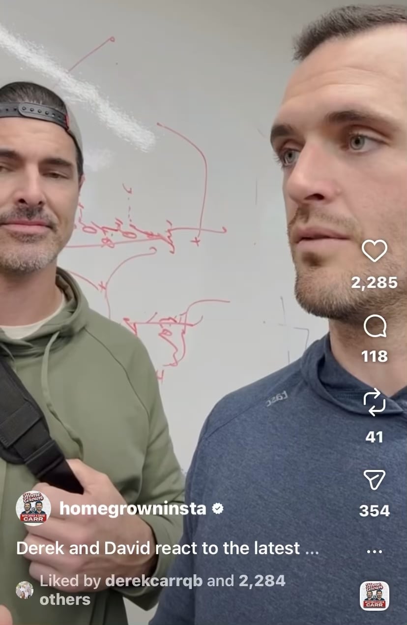 Derek Carr: “I’m in.” *Hangs up phone, lights up cigarette and sighs*…”I’m getting too old for this shit.”