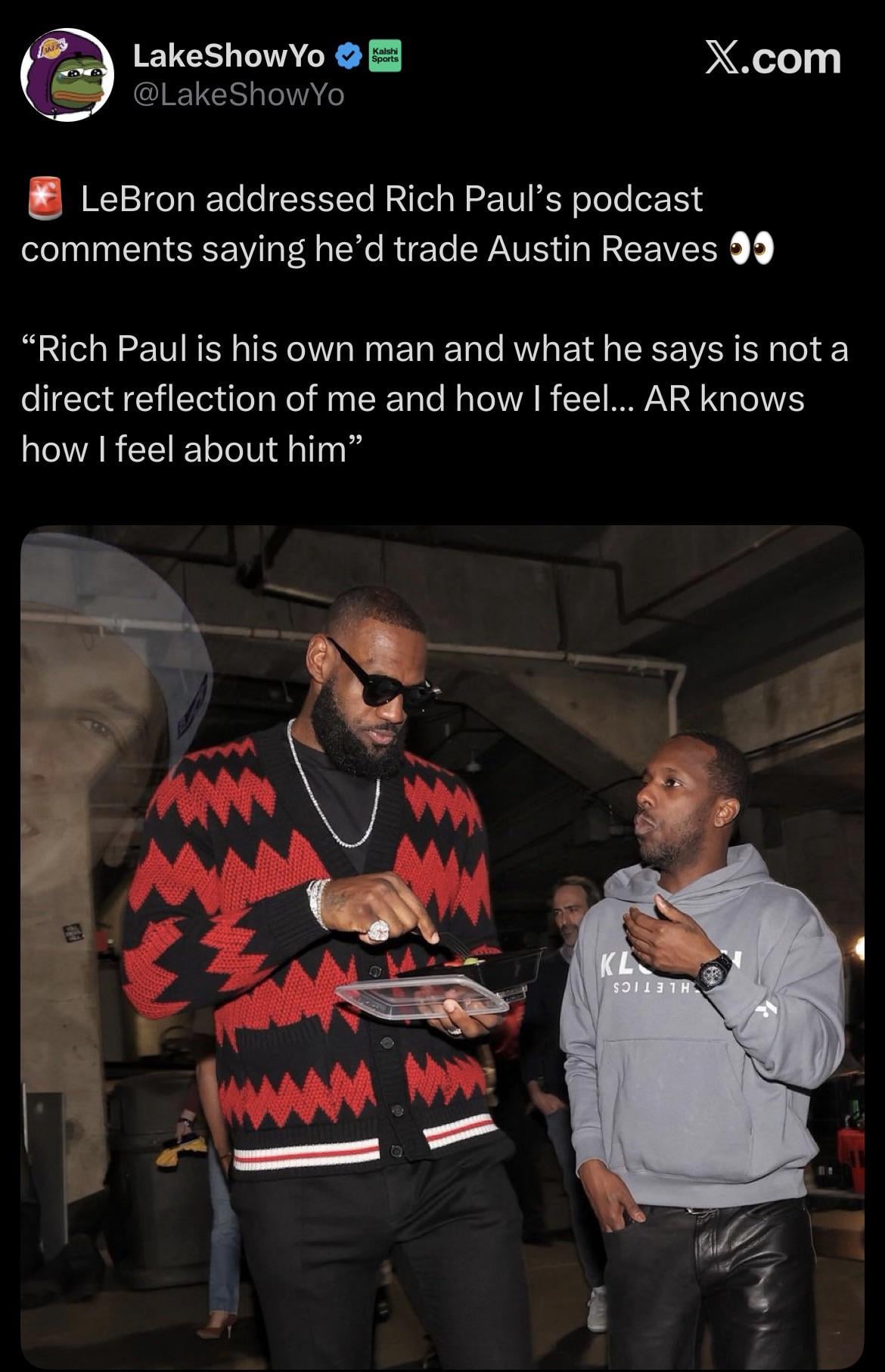 I believe LeBron. I also believe Rich is advocating for a GM job ala Rob Pelinka as well. Don’t be surprised if he’s running a team within the next 10 years or sooner.
