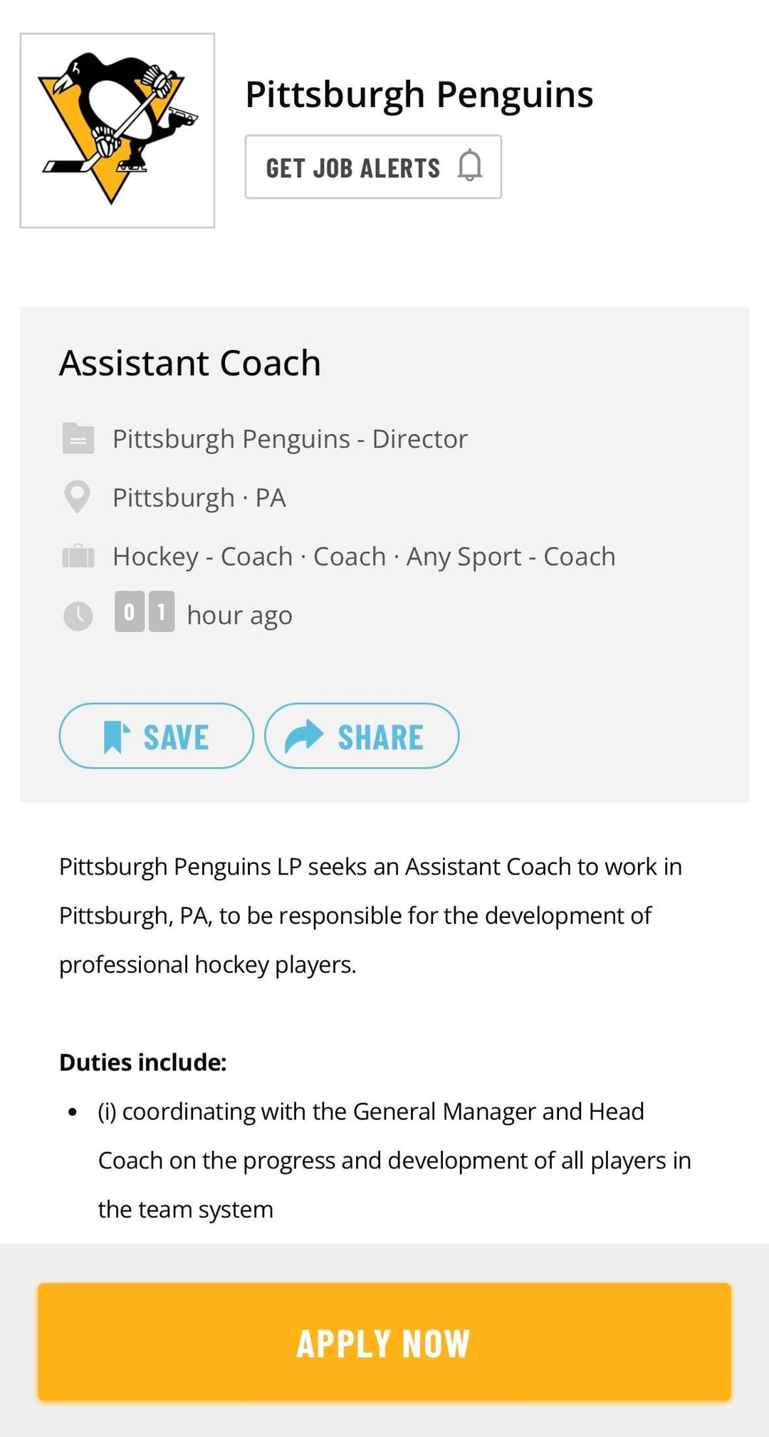 I honestly find it kind of strange that a team posted job opening for an assistant coach online. I always kind of thought hiring a coach was like an internal thing, not a public thing lol. Also they already have like a lot of established assistant coaches, so I wonder what this is about. They already have Rich Clune, Bonino, Mike Stothers, and Todd Nelson.