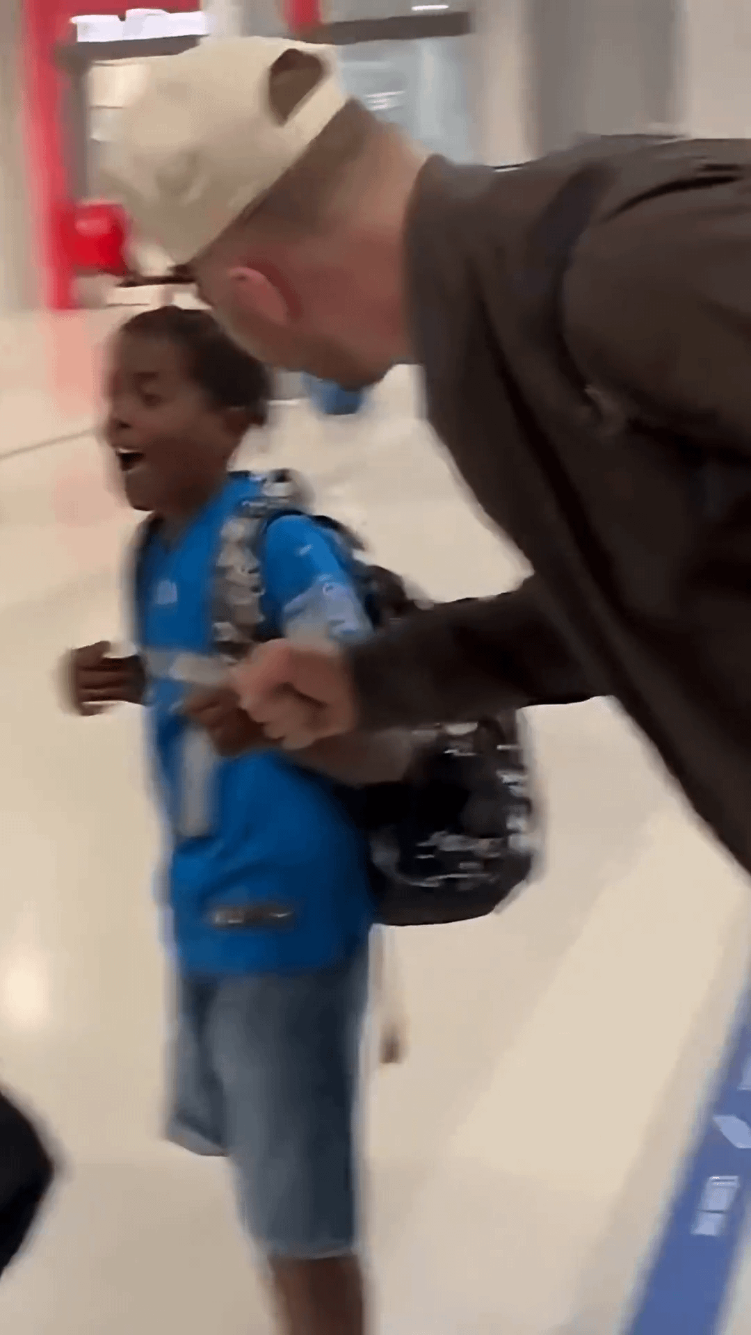 [Highlight] Aidan Hutchinson surprises a kid wearing his jersey at the airport