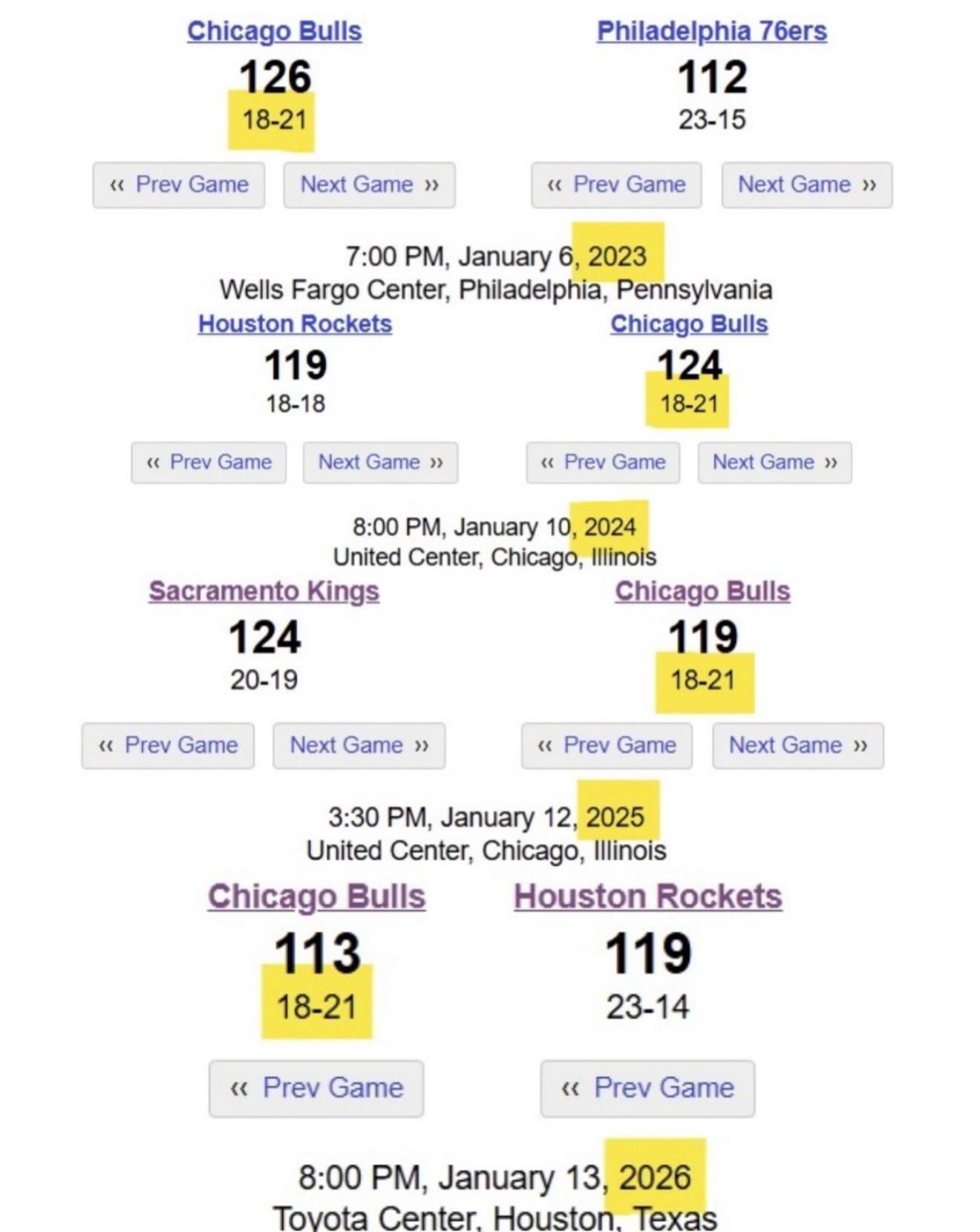 Bulls have had the same record of 18-21 through 39 games for 4 seasons in a row