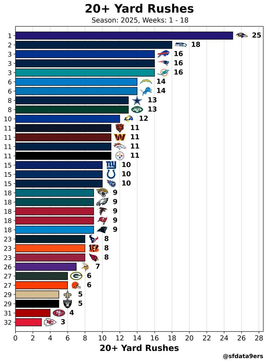What if I told you the 2025 Kansas City Chiefs had 3 rushes of over 20+ yards?