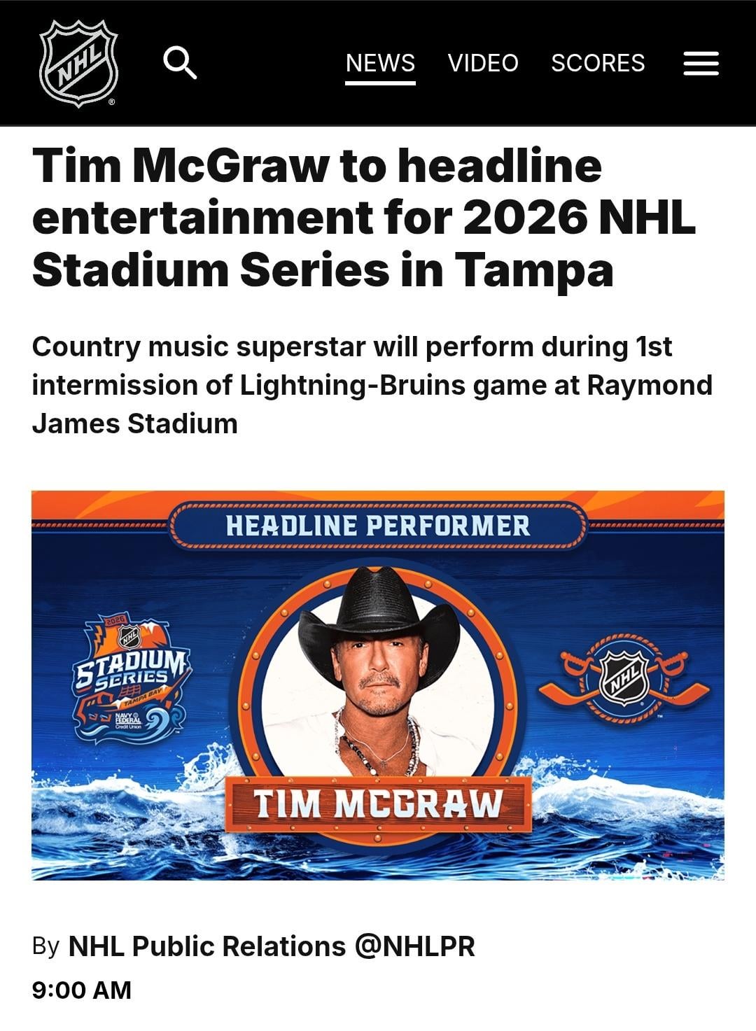 6. Wish I could be there for the game. I like Tim McGraw. Saw him a number of years back with George Strait at the stadium (Raymond James Stadium) when George Strait was doing stadium tours.