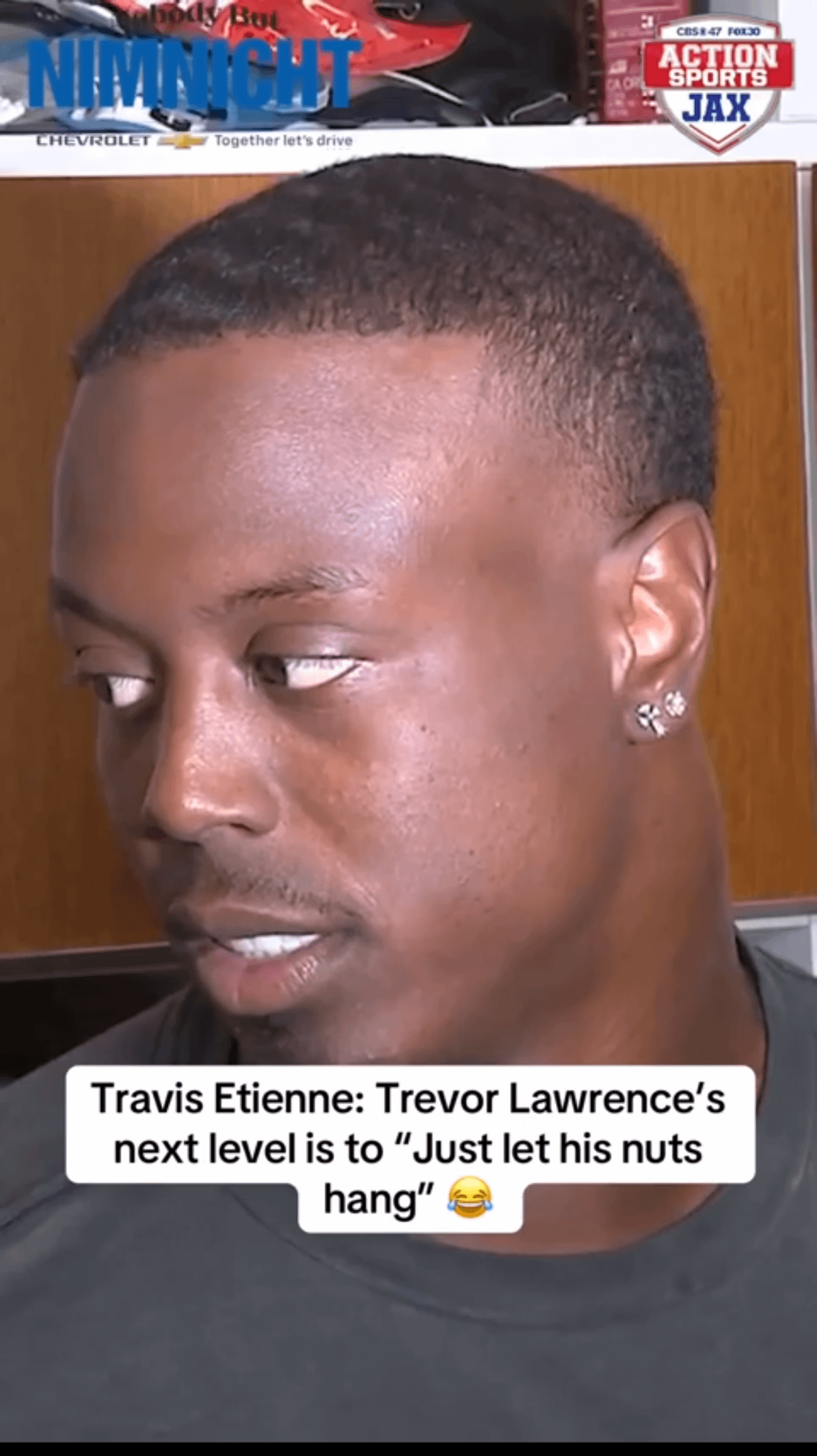 [Highlight] Travis Etienne when asked about how Trevor Lawrence can continue to play well and reach the next level: “Just let his nuts hang, I guess. Be cocky.”