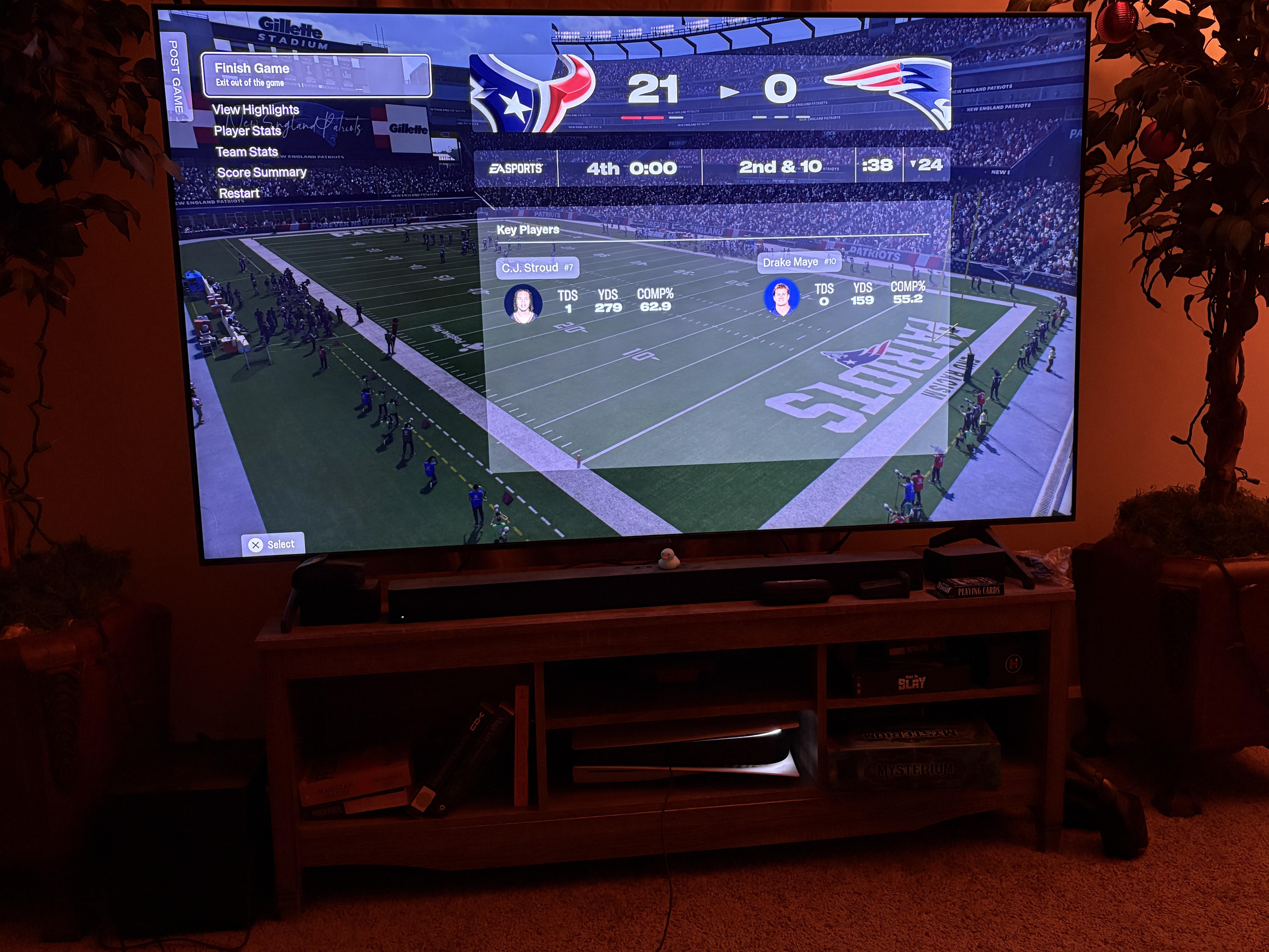 Here is my prediction via All-Madden 6 comments Eh.. I’d bet the over that Maye gets atleast one longball off for either a td or fg position atleast 23-17 I’m in 7 field goals. This is 100% believable as long as the defense gets a turnover in Ka’imi’s range. This is so unrealistic. I’m going with 48-3. Pats get a garbage time field goal. Looks reasonable to me. Leave a ReplyYou must be logged in to post a comment.