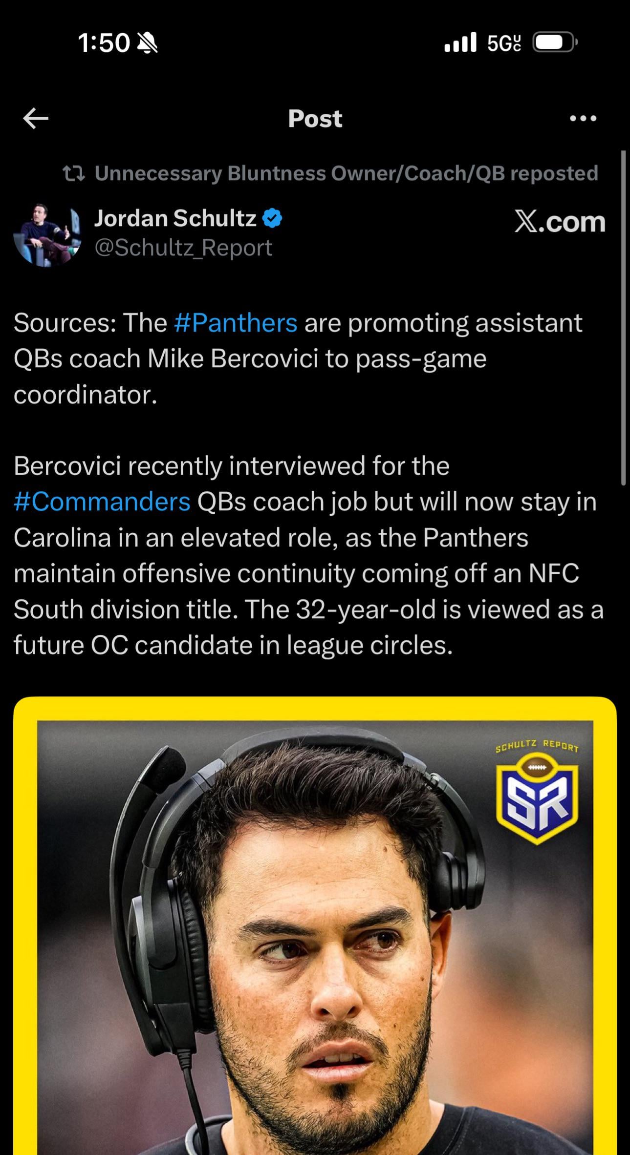 [Schultz] Bercovici promoted to pass game cordinator