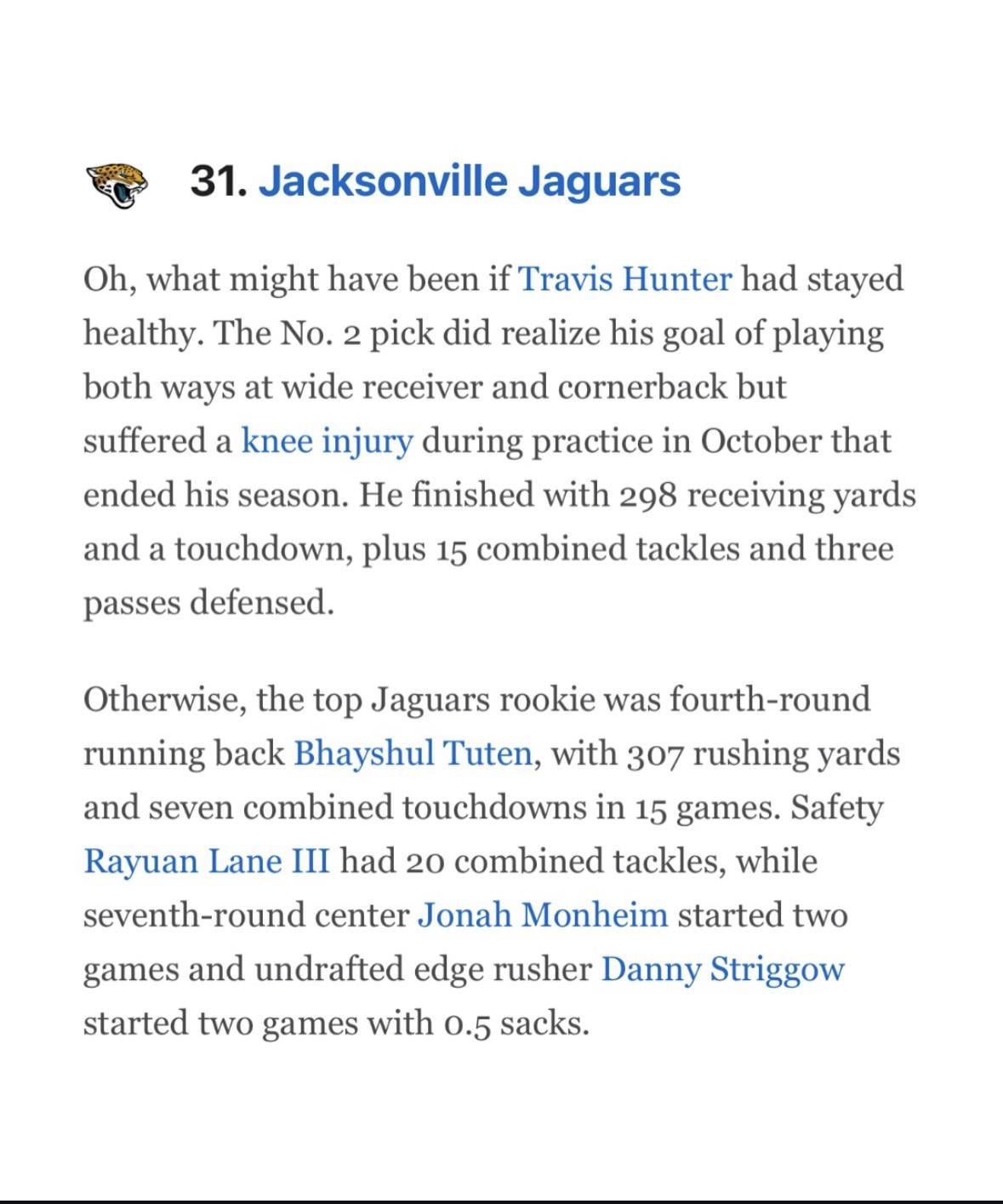 I mean, this is fair. Took Hunter a few games to start making plays and then he got a season ending injury. All we really got rookie wise were Tuten and Allen. We just didn’t have any standout “holy shit” rookies like some other teams had, so I understand the lower ranking. Plus, we had a banger of a season without much help from our rookies, so who cares?
