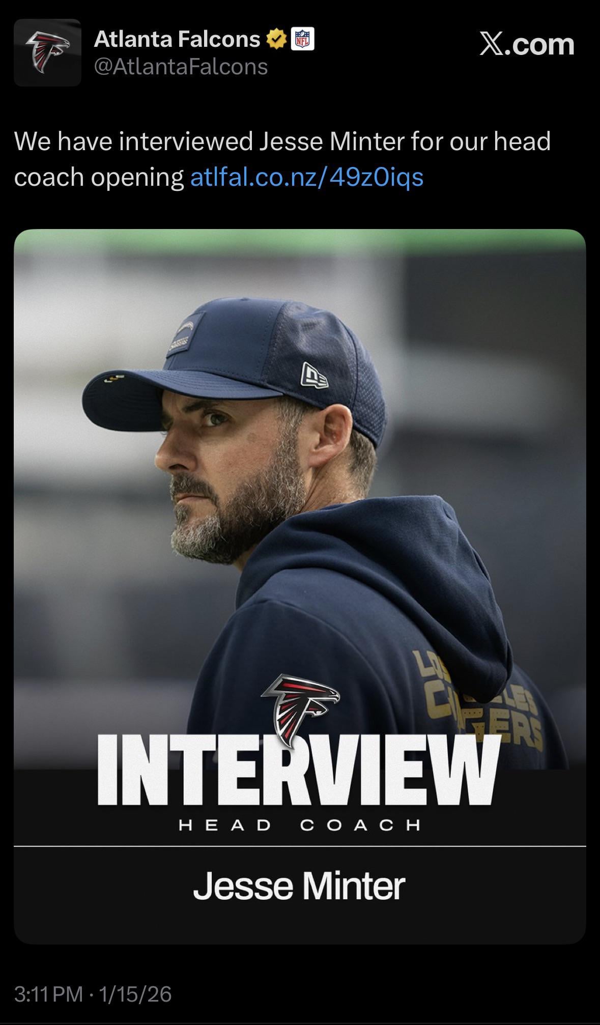 As a fan of both teams I had hoped that Raheem would hire Minter as DC for the Falcons two years ago, but Raheem’s gonna Heem! Again Minter isn’t my first choice and the fans won’t like it, but we can and have done worse. I don’t want to be in OC hiring purgatory forever, but seeing what Minter could do with these defensive rookies would be exciting.