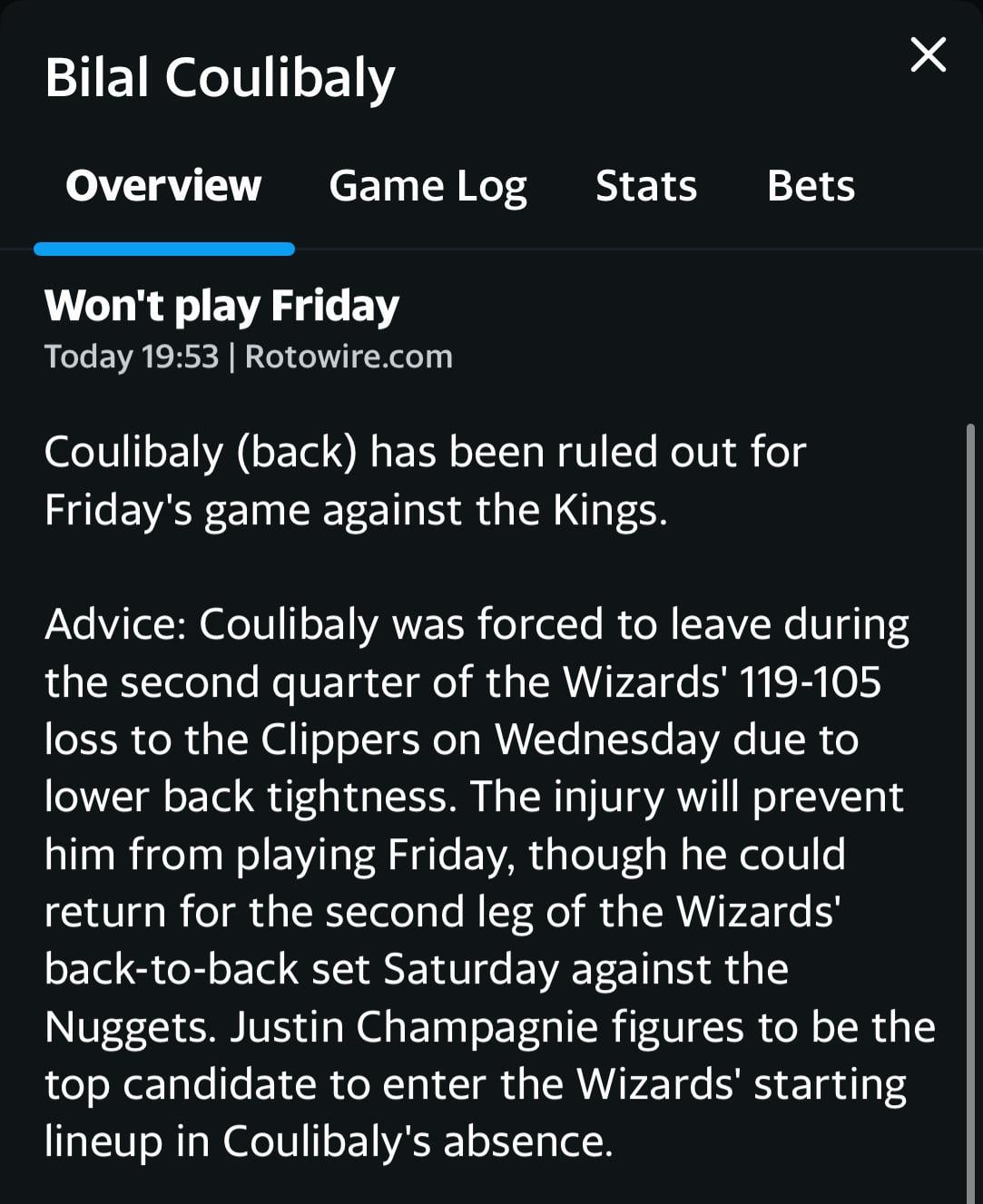 A back injury that is looking like it will possibly cost him 6 quarters of basketball? Let’s not overreact here.