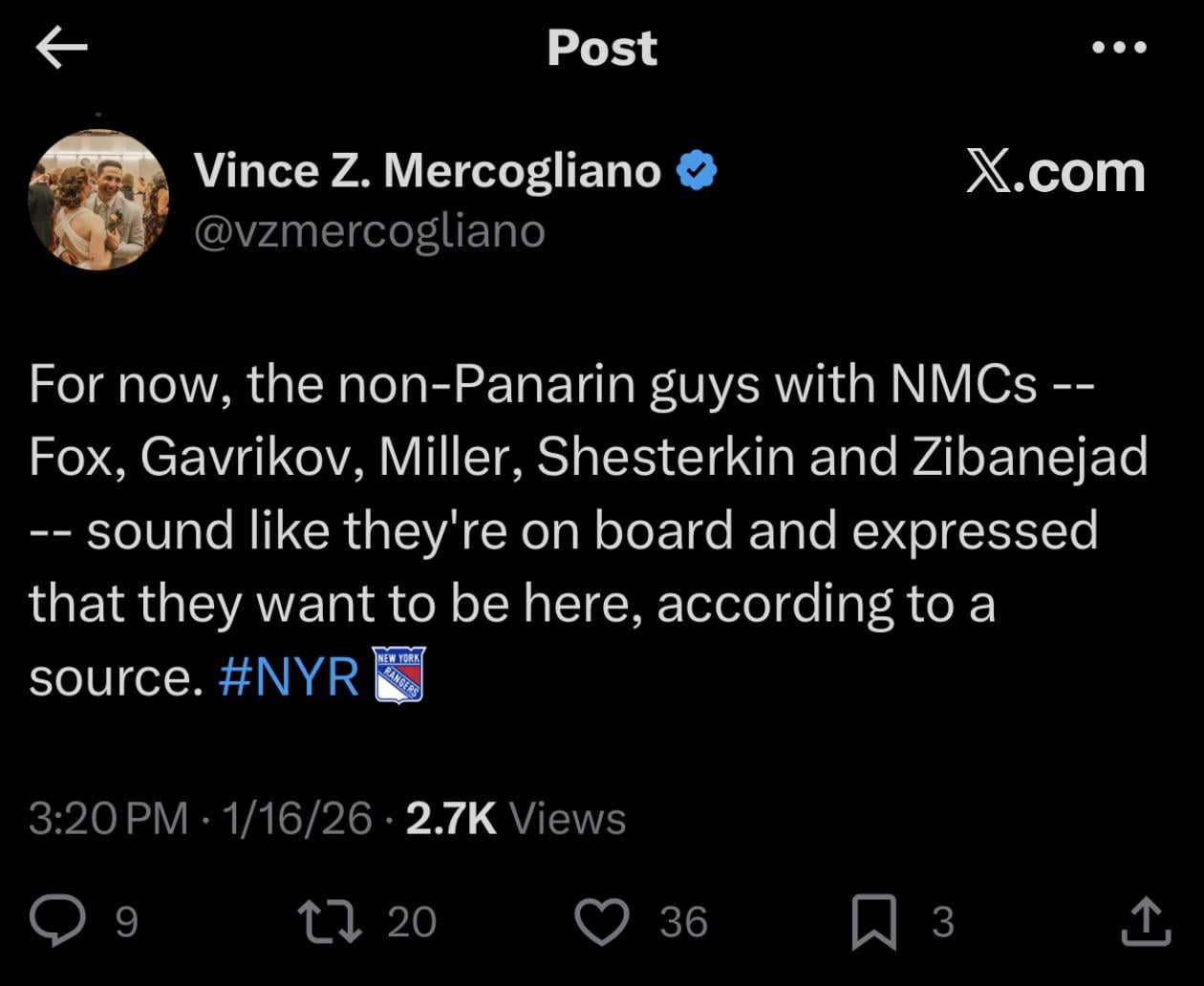 [Mercogliano] Fox, Shesterkin, Gavrikov, Zibanejad, and Miller want to stay