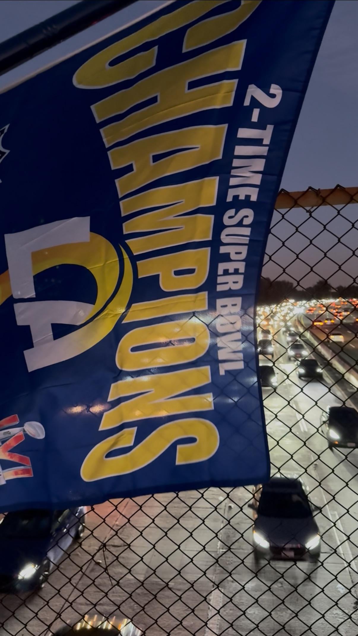 We were out there all afternoon supporting the team and showing love to the Rams but in reality it was the fans that showed love by honking and cheering for the team as they drove by. After the Rams win this Sunday expect a much bigger following through the NFC Championship!!
