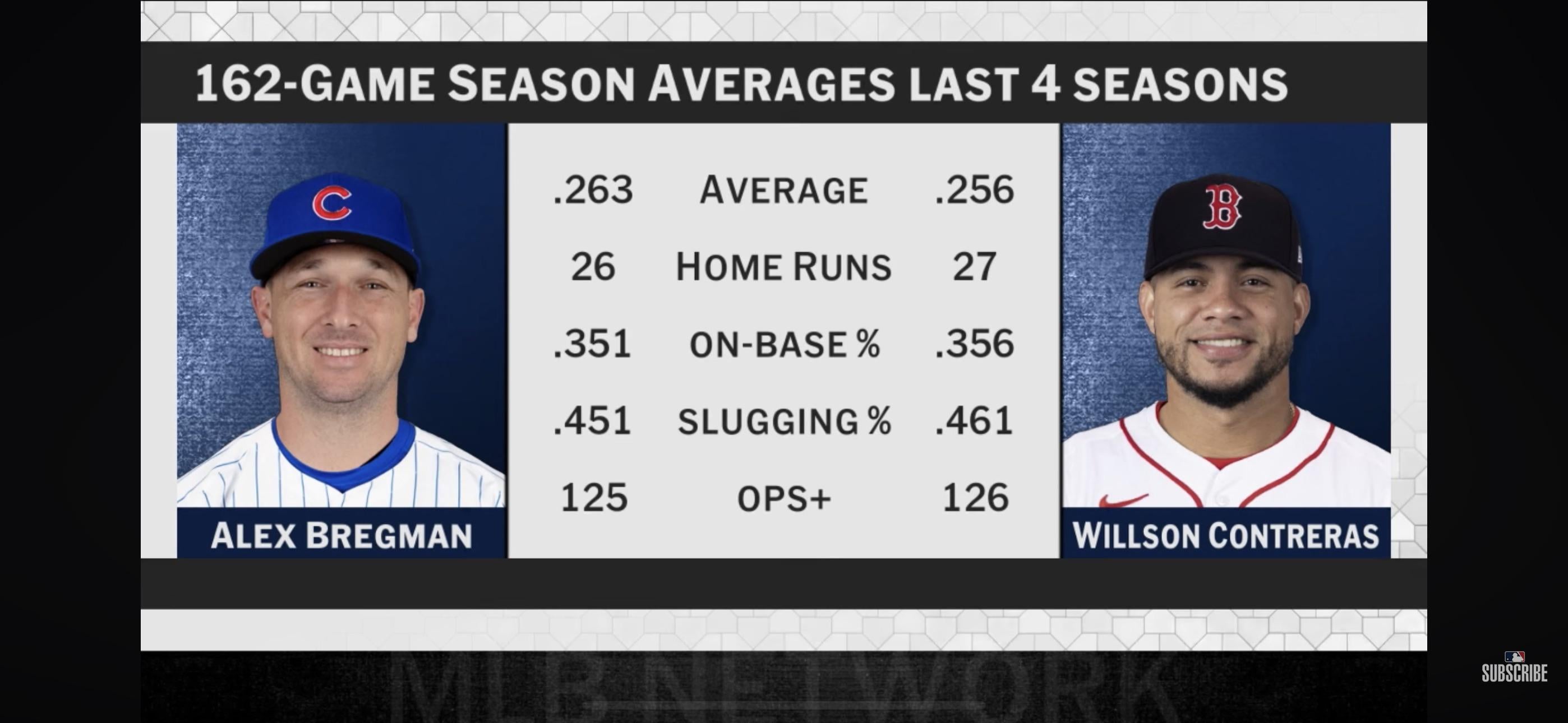 A more accurate comparison would be to point out that Bregman had an entire 1.0 more in WAR than Contreras while playing 20 fewer games the entire season. There is no way in the world you can convince me that swapping Bregman for Contreras is a wash.