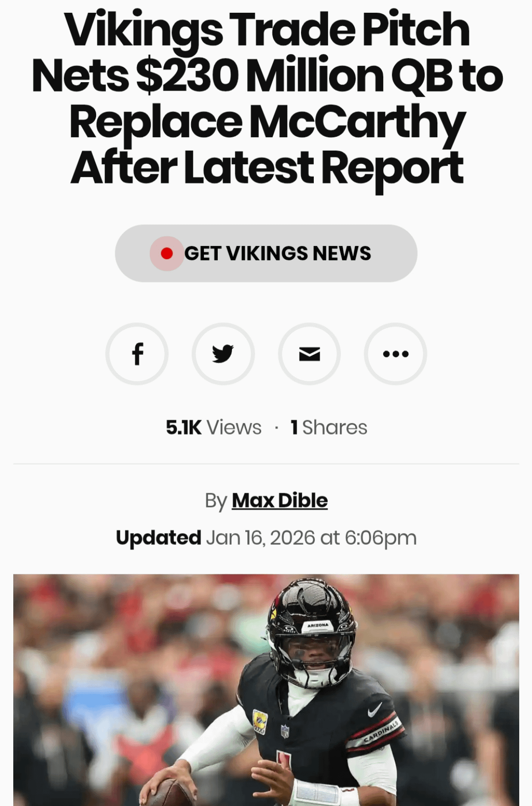 I laugh when people say Kyler wonโt a have market because teams like Minnesota, Pittsburgh with Rodgers not returning, Atlanta, New York, or Cleveland and other teams will be looking for new QBโs.