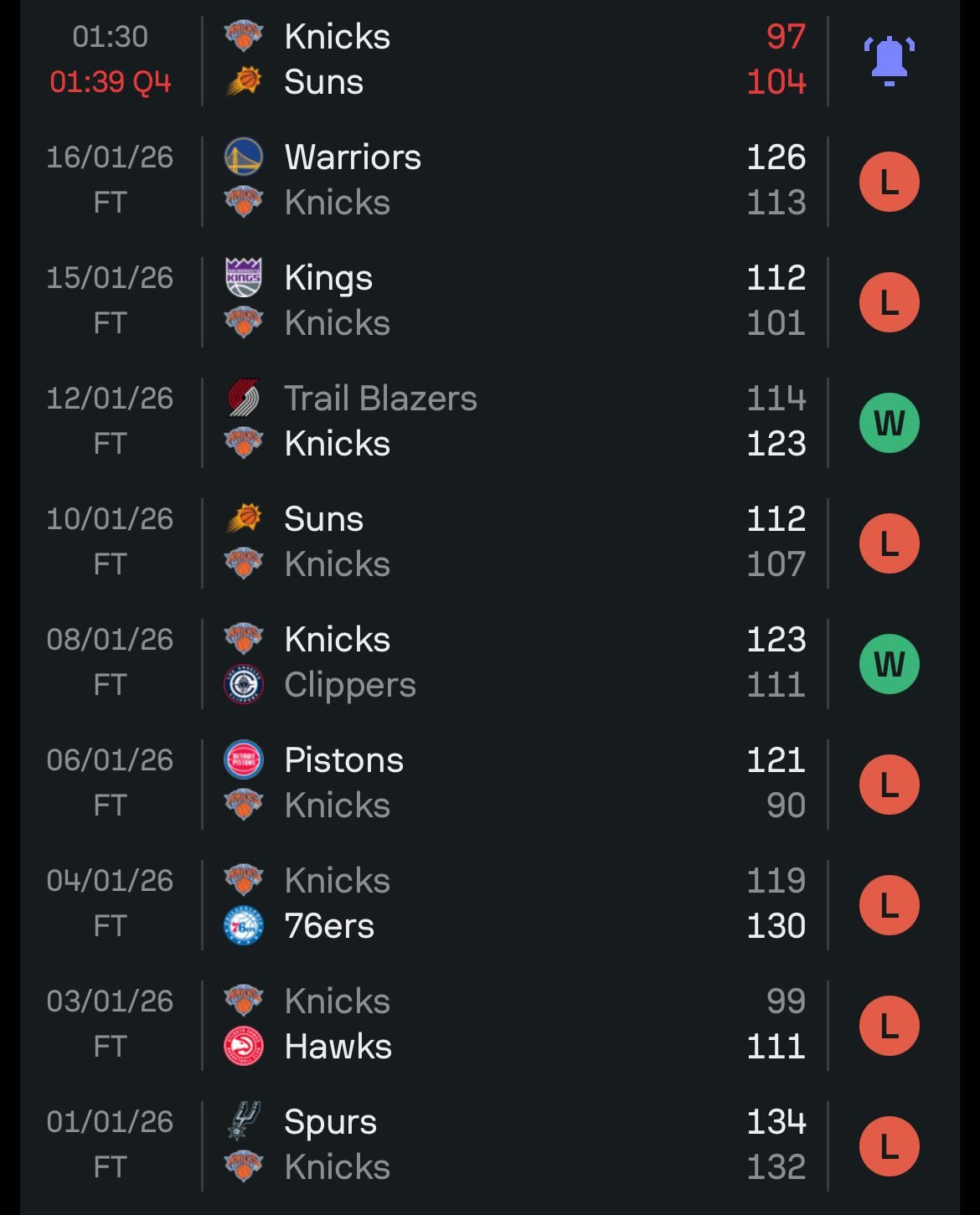 About the worst the Knicks have looked since 2022 at minimum, if not pre-Thibs. No heart, no effort, and something’s gotta change. A championship caliber team doesn’t EVER lose 8 of 10. Some core members are getting moved or Brown is getting fired early.