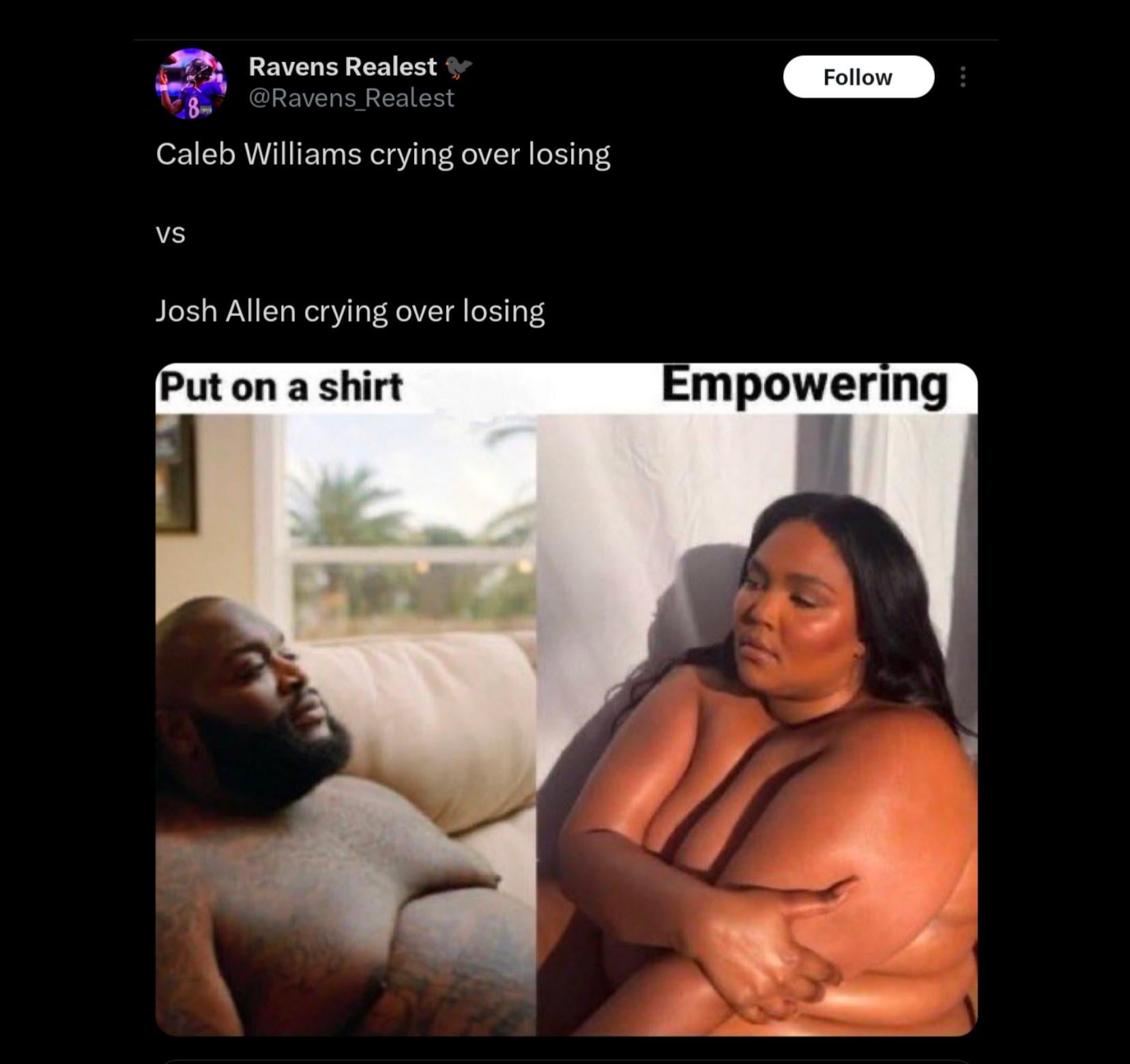 [Ravens Realest 🐦⬛] Caleb Williams crying over losing vs Josh Allen crying over losing