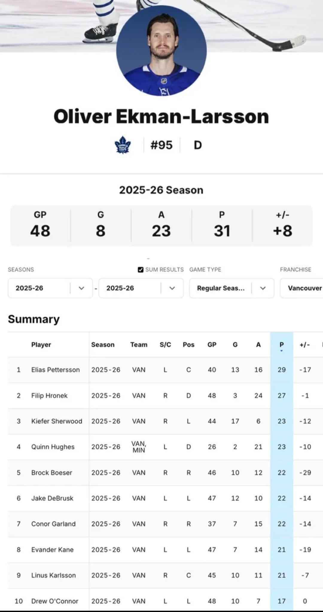 14. OEL looked really good for the Canucks when Hughes wasn’t in the lineup. The problem was that Hughes is obviously the better player and both wanted to be given the same kind of minutes/match-ups/zone starts.