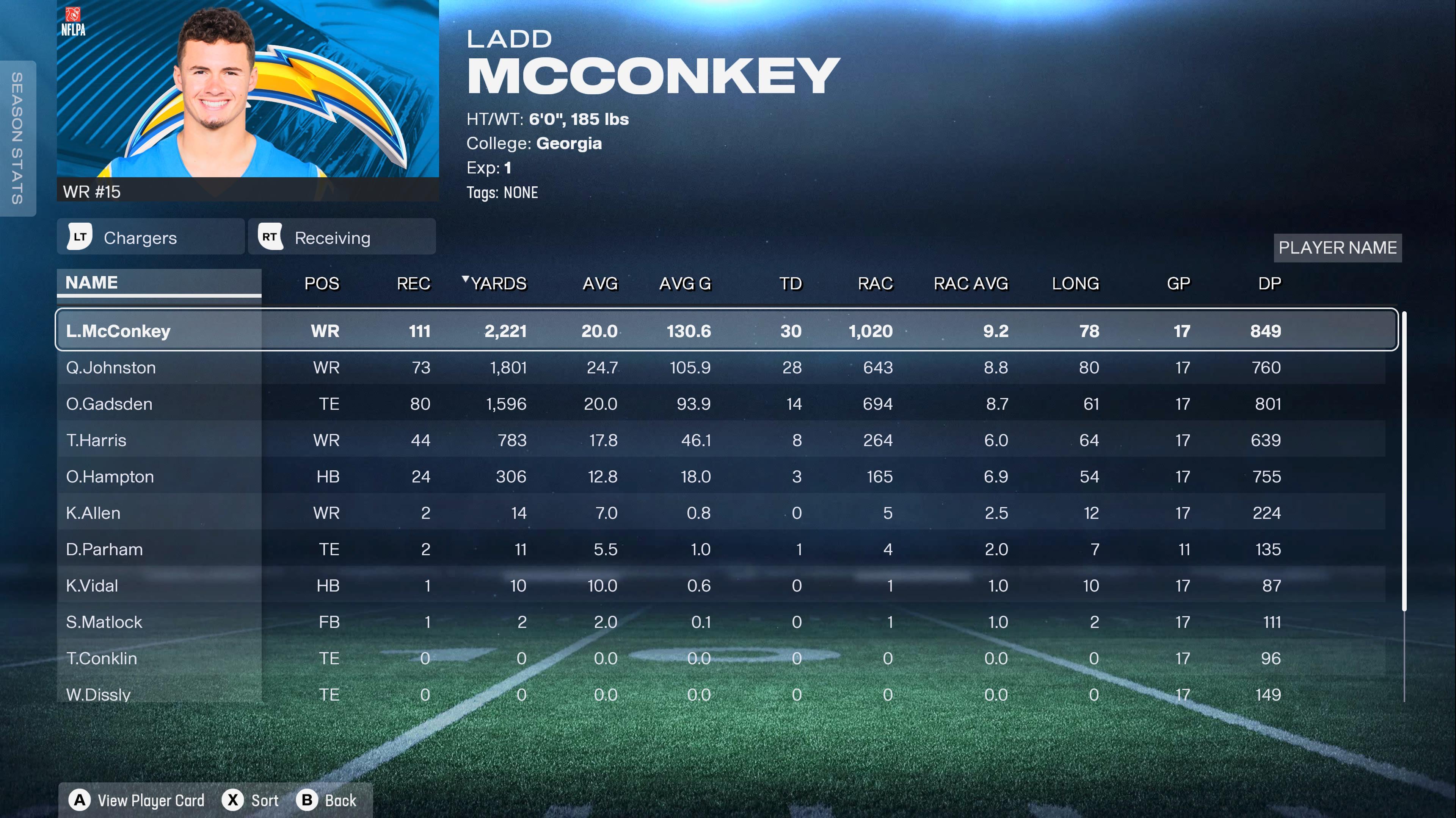 Keenan played 17 games and had 2 catches for 14 yards lol. So, i’m gonna guess you played on rookie difficulty, and spammed some crazy slot play to Ladd all season. Go ⚡️