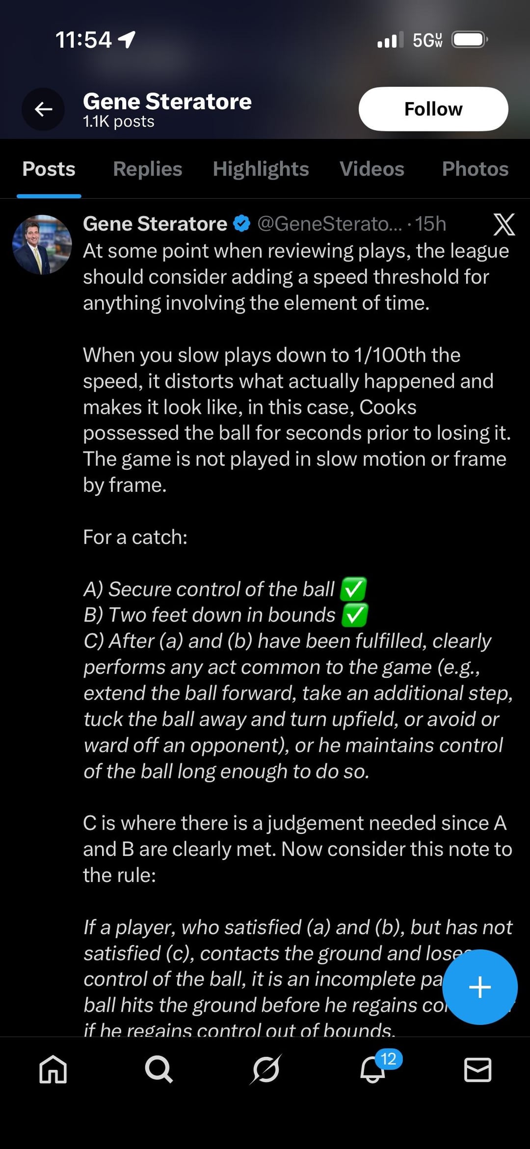I like the Check the Mic podcast and listen weekly. One of the points they make consistently is that super slow motion reviews are fundamentally changing the game in some very undesirably ways. Now in the case of the Cooks “catch” the correct call was made and the review upheld it. But there are others that have gone the other way. The typical example of this is whether a play is called an incomplete pass or a forced fumble. It used to be that if a QB was hit from behind at the top of his throwing motion and the ball flew forward that was a fumble. Now they look at the tape frame by frame and check to see if there’s a singular frame of the QB’s arm moving forward in which case it becomes a completed pass. I think slowing footage down for reviews is fine for things like checking if a foot is in bounds or whether a defender jumps off sides, but it should absolutely not be the driving force behind decisions like fumbles or possession of the football. Otherwise we’ll get to the point where every other play is reviewed and the game becomes unwatchable.