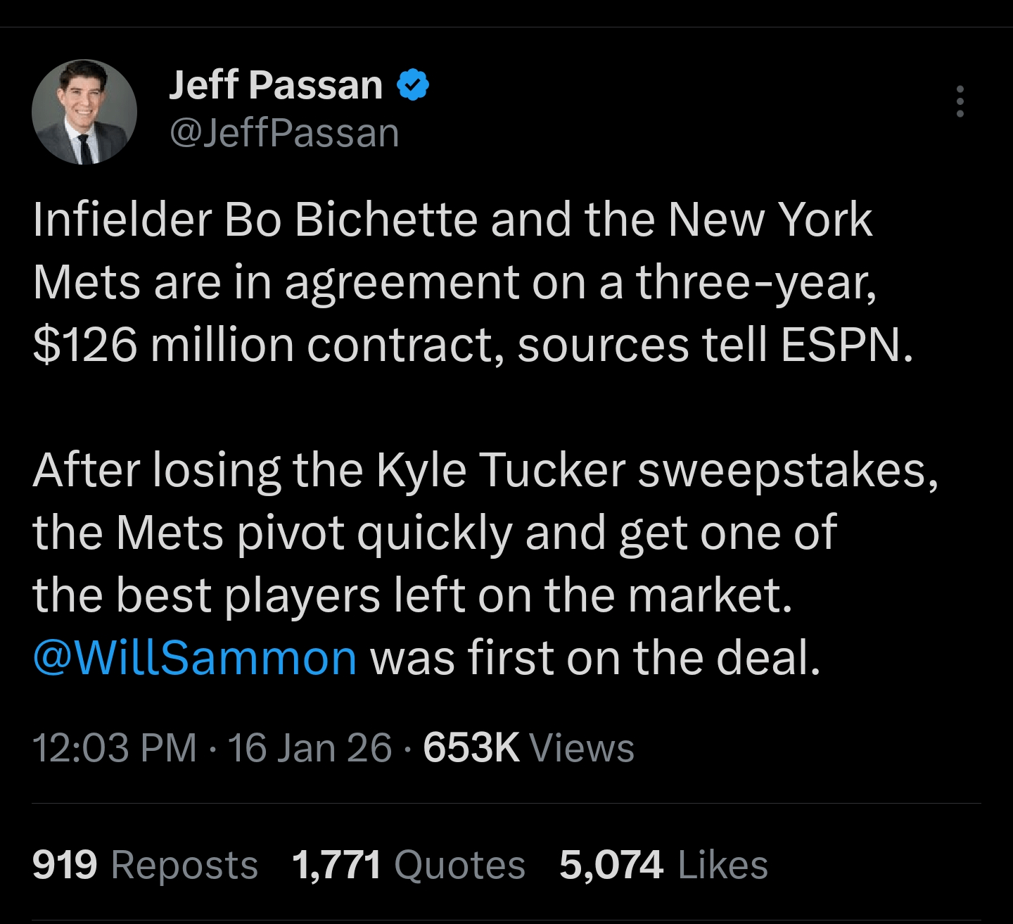 Its hard to see this as anything other than a Plan A failure (signing tucker) followed by a panic attempt to save face (throw money at Bichette)