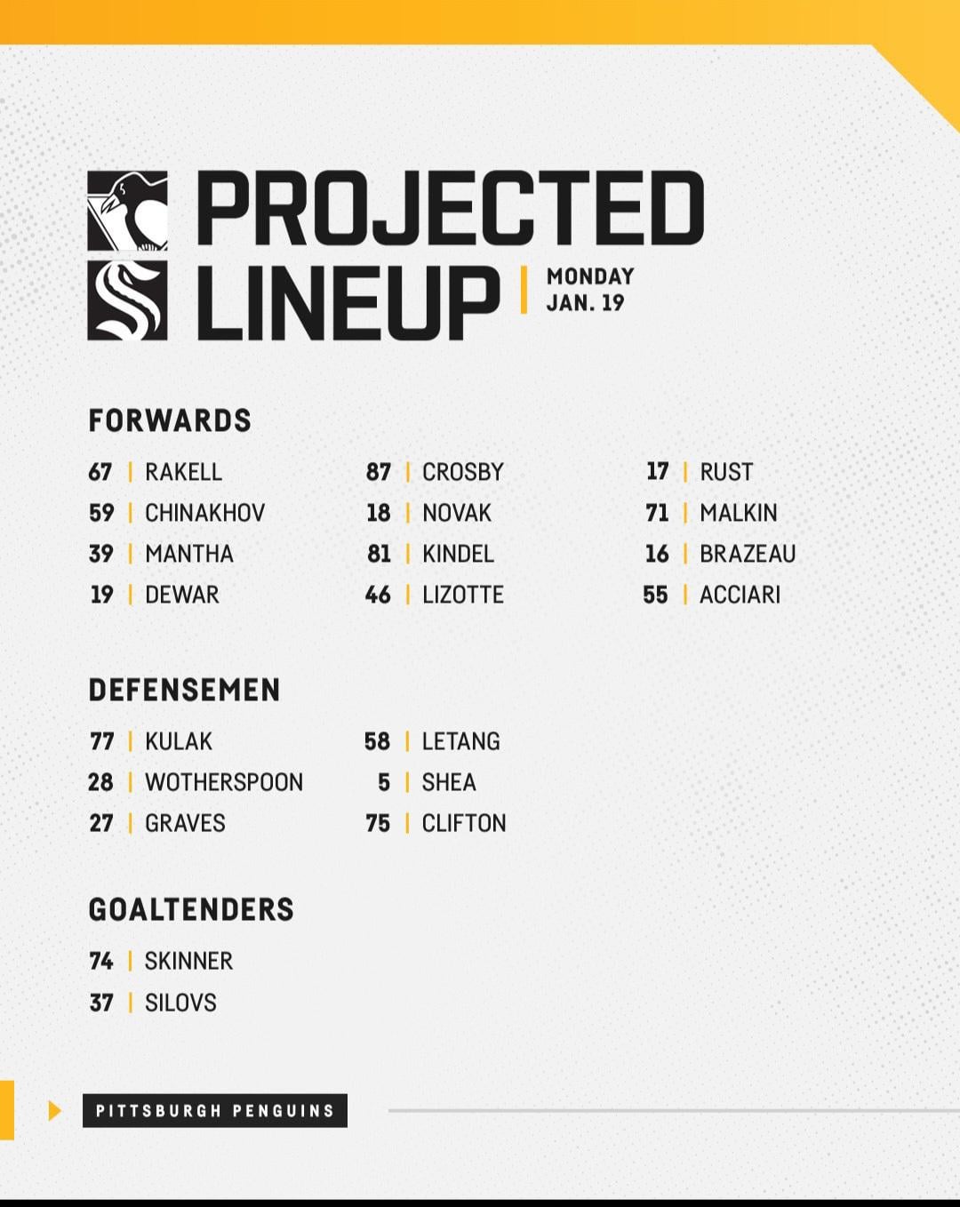 Lineup for today. Skinner starts and lines stay the same.