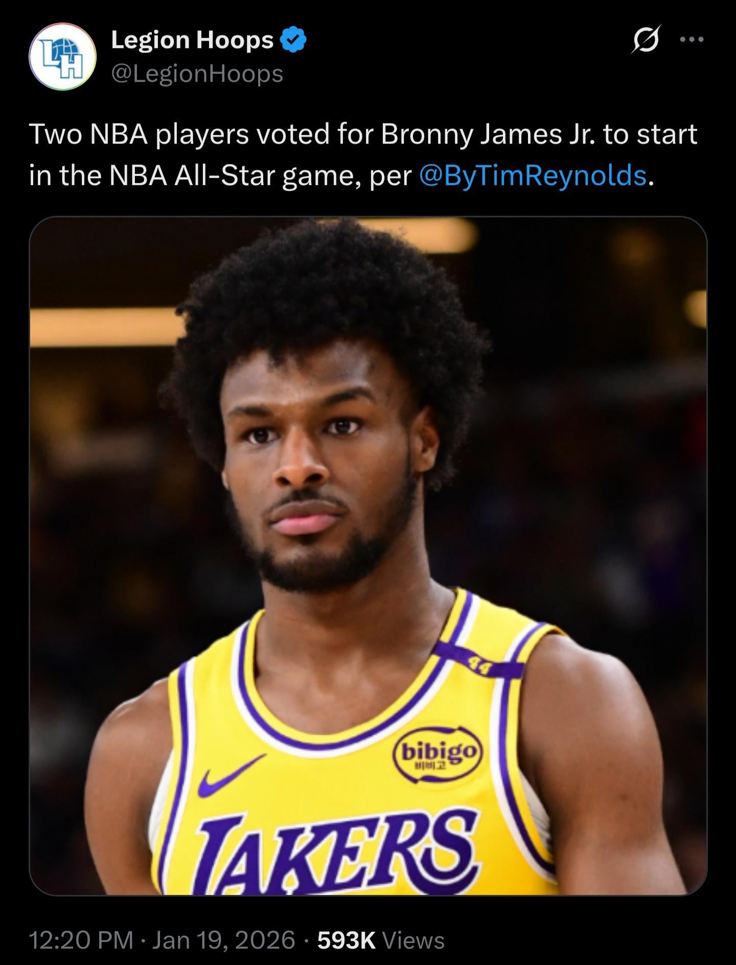 Two NBA players voted for Bronny James to start in the NBA All-Star game