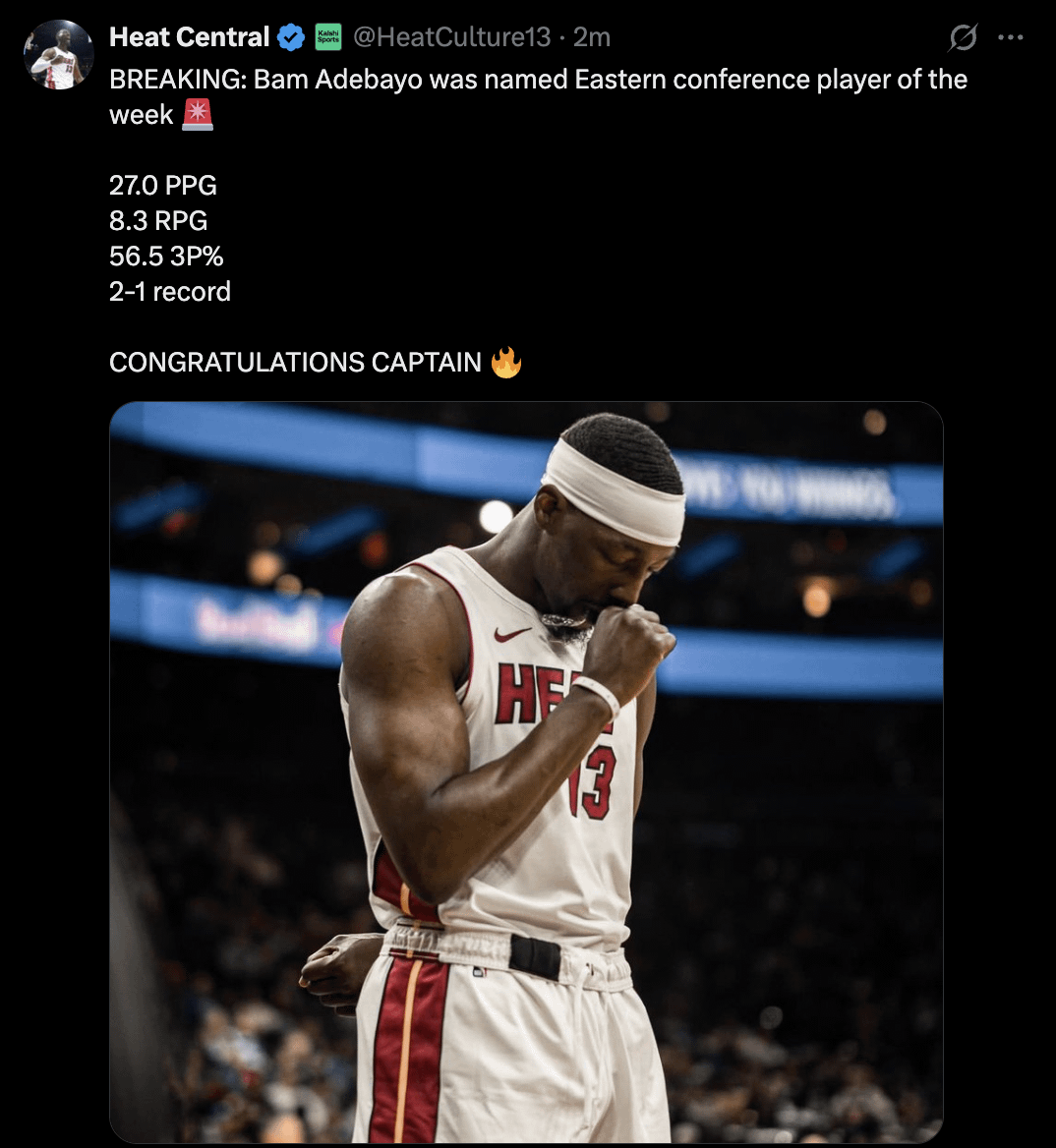 Bam Adebayo was named Eastern conference player of the week π¨