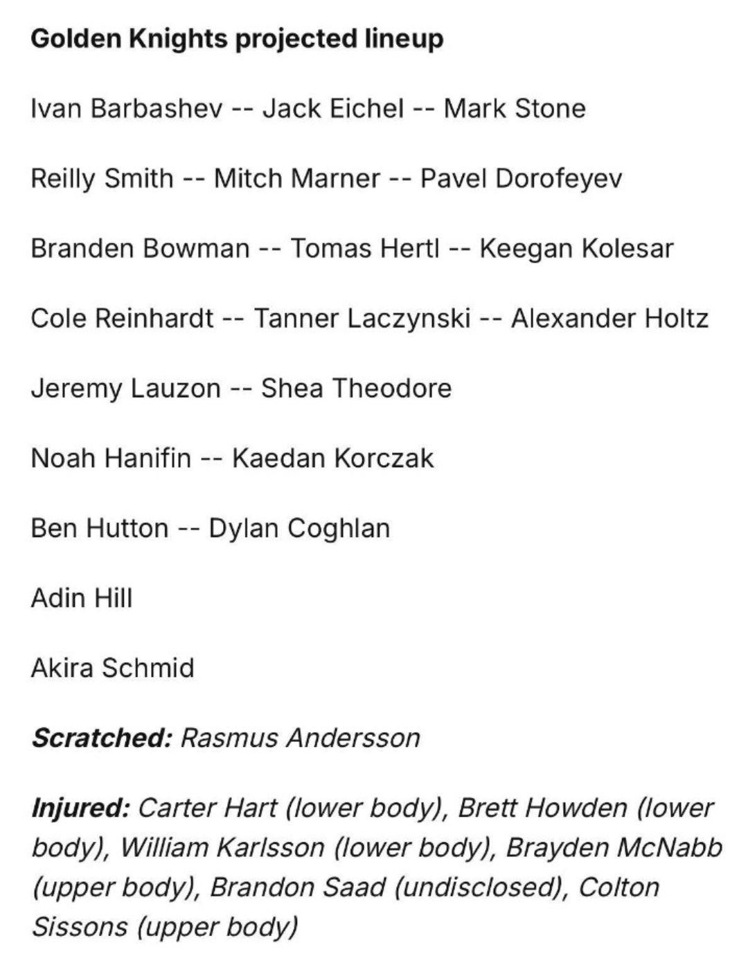 Cassidy already scratching Andersson. Proof we lost the trade…s/