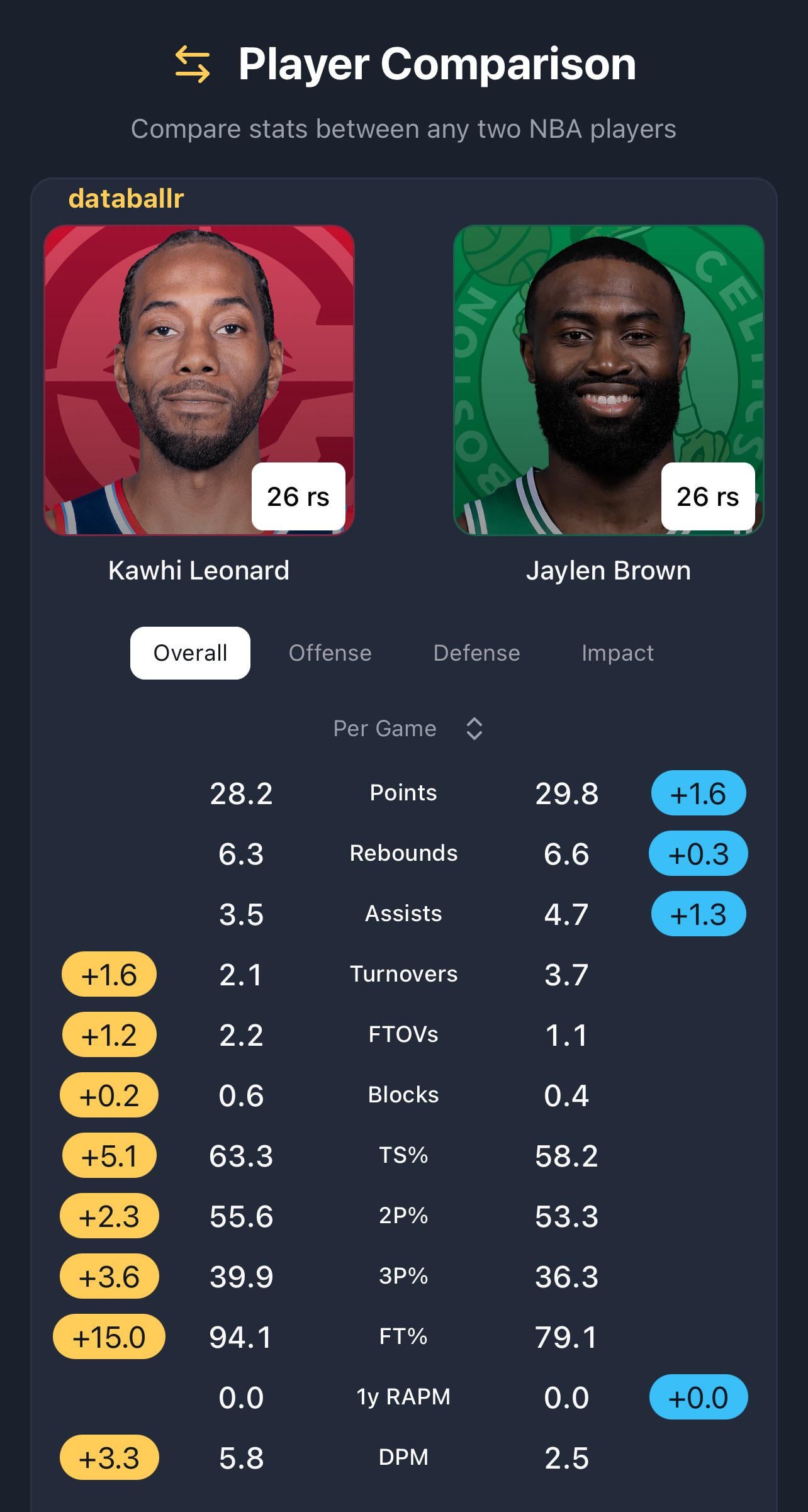 [Pina] Kawhi vs Jaylen Brown “two-way” stats 2 comments Brown is averaging almost 4 TOVs?! (must come with his high usage rate) Klaw don’t play. Leave a ReplyYou must be logged in to post a comment.