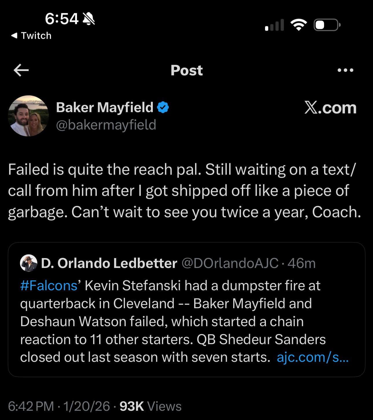 Baker has every right to be pissed for that to be fair. The browns finally had something going and then completely sold their soul to get Deshaun Watson. Just laughable.