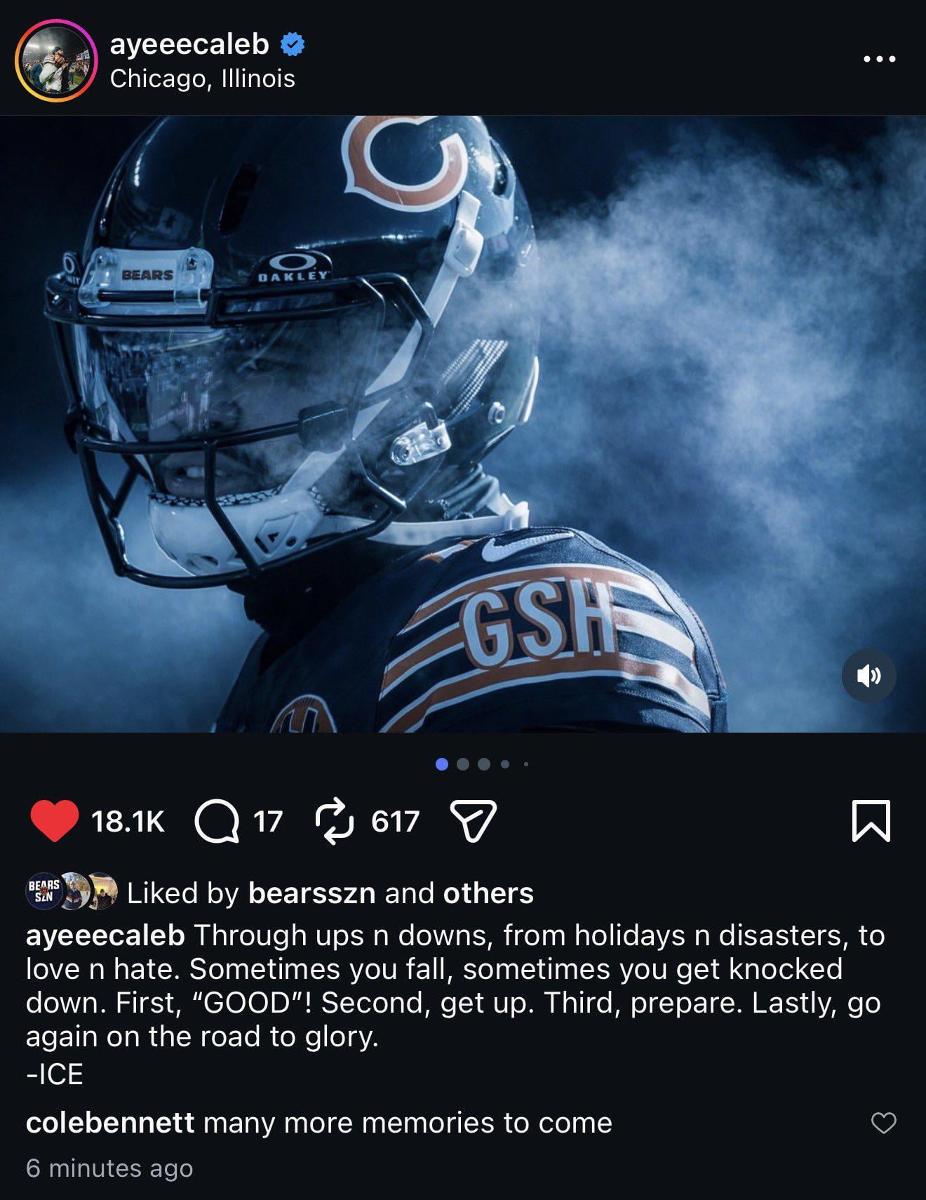 Caleb Williams latest post on IG: “Through ups n downs, from holidays n disasters, to love n hate. Sometimes you fall, sometimes you get knocked down. First, “GOOD”! Second, get up. Third, prepare. Lastly, go again on the road to glory.” — ICE