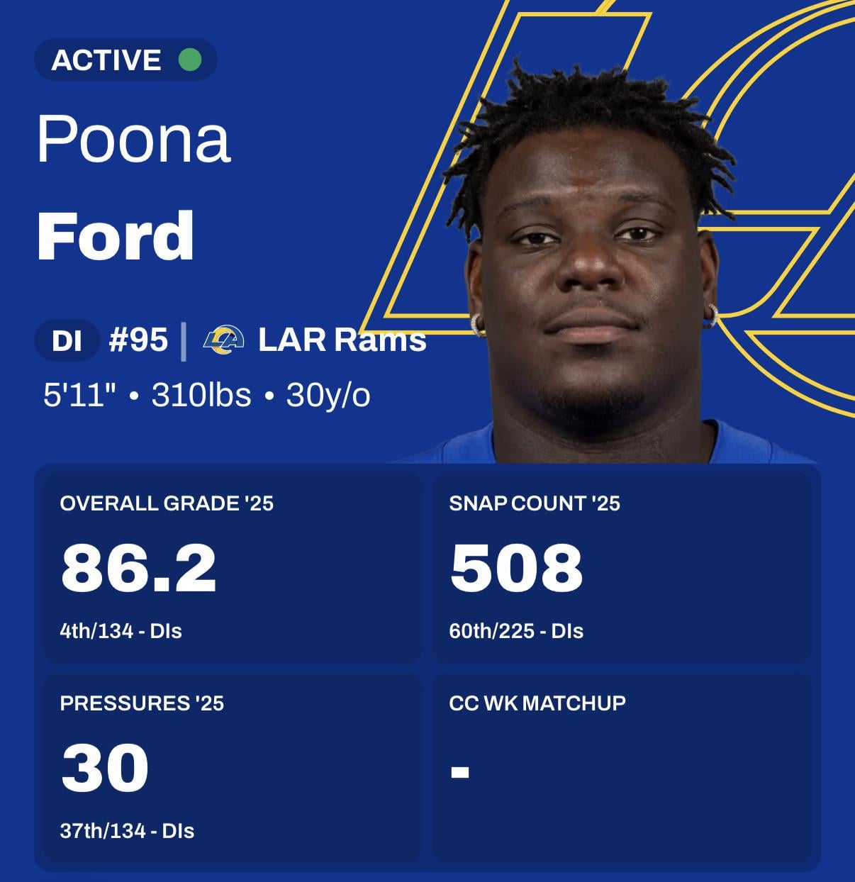 Let’s give Poona his flowers. Our man is so under appreciated. 4th highest grader interior lineman by PFF 7 comments I LOVE POONA! Way to go Poona Trust me Poona ain’t under appreciated in my house Beast We needa draft another BIG to help Poona n turner. He’s about to have a game against the seagulls! The difference between the Carolina games with and without him is evidence enough. Leave a ReplyYou must be logged in to post a comment.