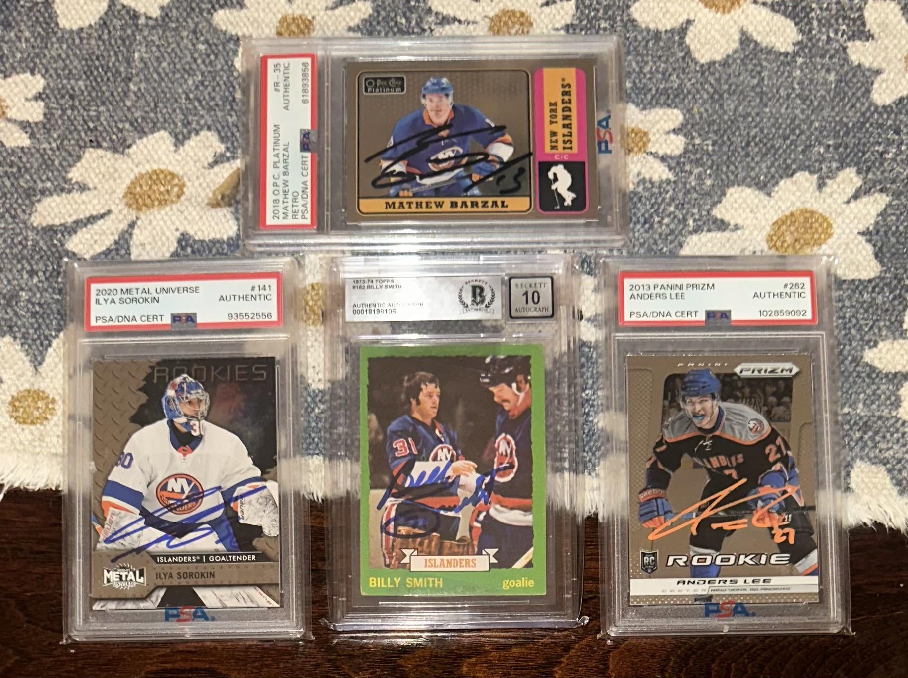 Sorokin Rookie • $100 Lee Rookie • $70 Barzal • $100 Smith Rookie • $100 All Ship 2-3 Day USPS Priority Let me know if you’d like better photos 1 comment If that Billy Smith is a 10, so is my wife, lol. Leave a ReplyYou must be logged in to post a comment.