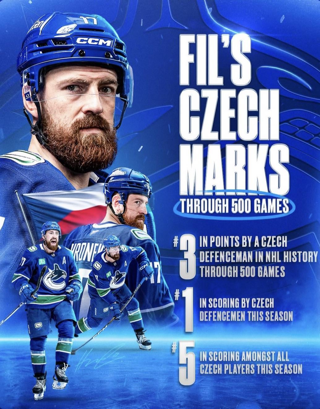 Hronek played 390 regular season games before finally making the playoffs in his first full season with the Canucks. At one point he was in the NHL top 10 for most games played without a playoff appearance (due to his time playing for Detroit).