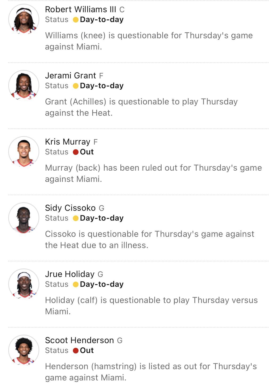 4. I expect Jrue, Jerami, and RWIII to sit on Friday. Of the three, RW is a lock while I could see Grant playing if he’s up for it.