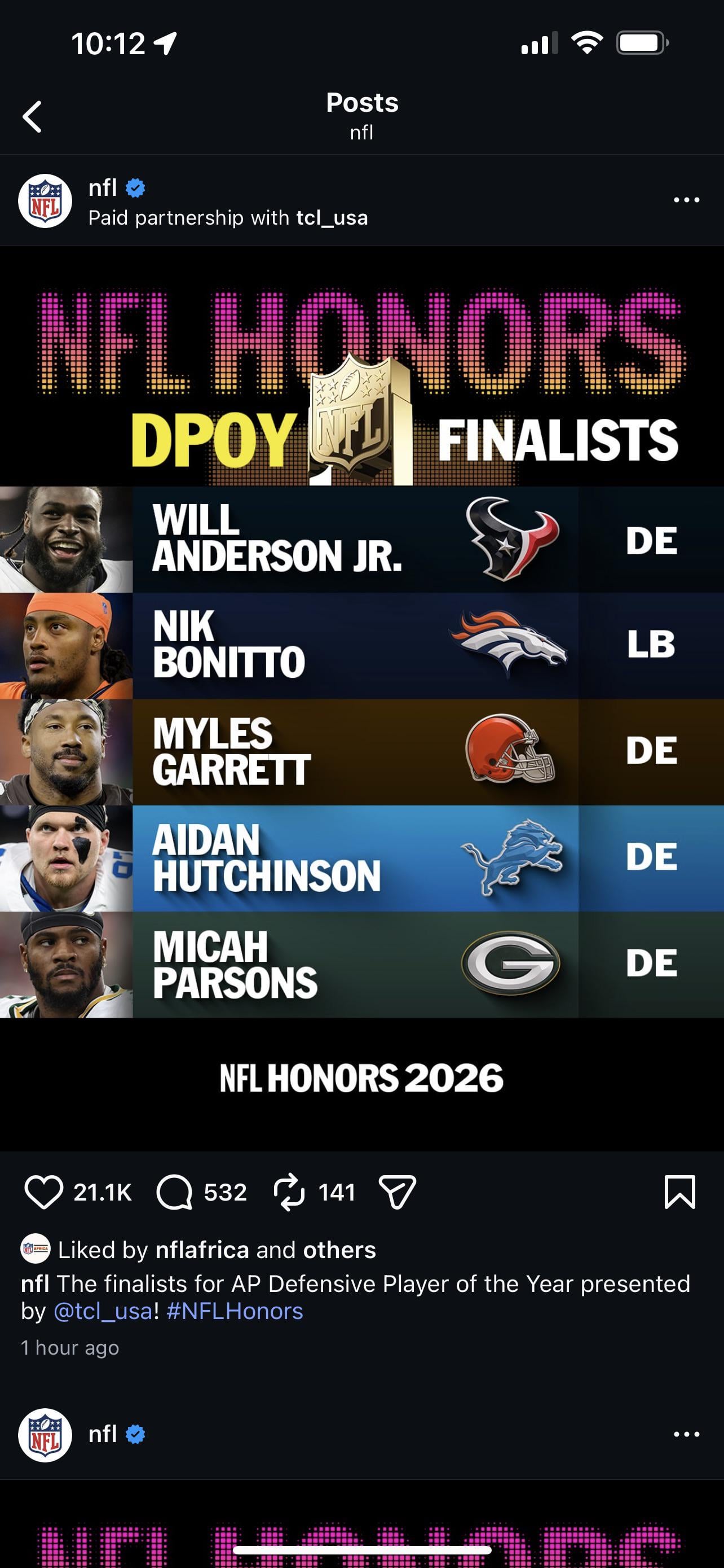 Go look at the stats quickly and explain to me how Burns can get passed over by Parsons, Hutch, Bonitto & Anderson??? This is a mute point anyway bc Garret is goin to win it. But to not have Burns as a finalist is insane. There is not a single category where one of these other finalists have a better stat line than Burns.