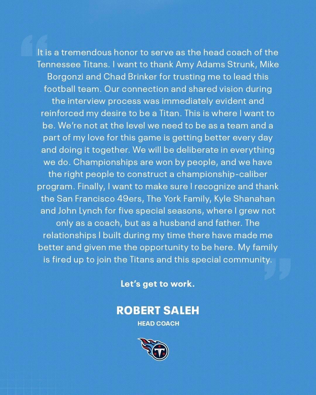 Statements from Robert Saleh, Mike Borgonzi, and Amy Adams Strunk