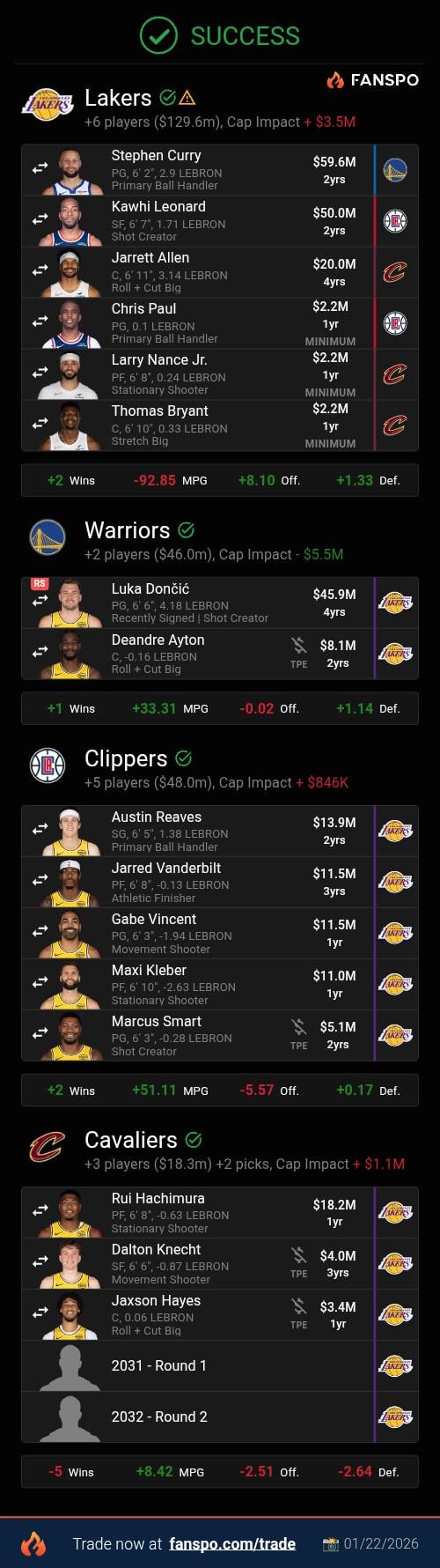 I think this is one of those rare trades where every team walks away offended. Clippers probably say yes but that’s it.