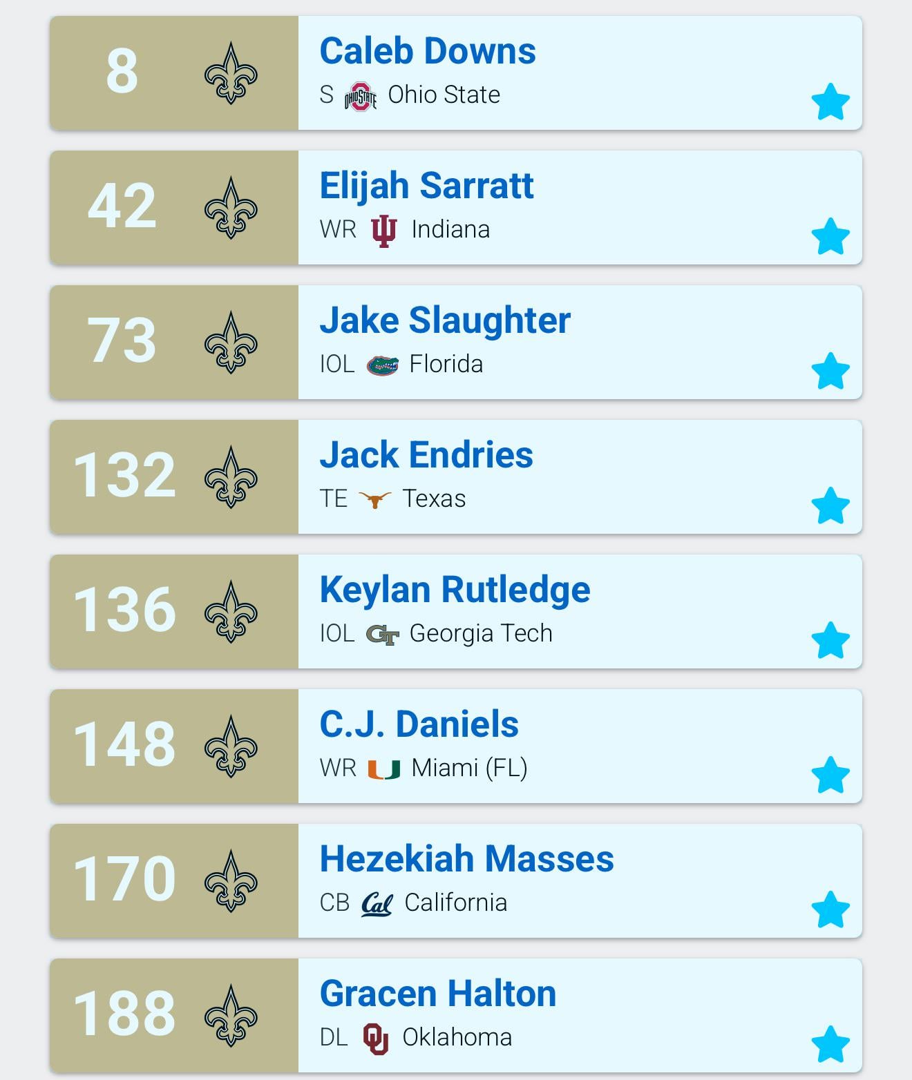 Rest of the guys I don’t know too well so I’ll have to go off position. I like olineman and tight end. But then you double dipped olineman and then wide receiver again.