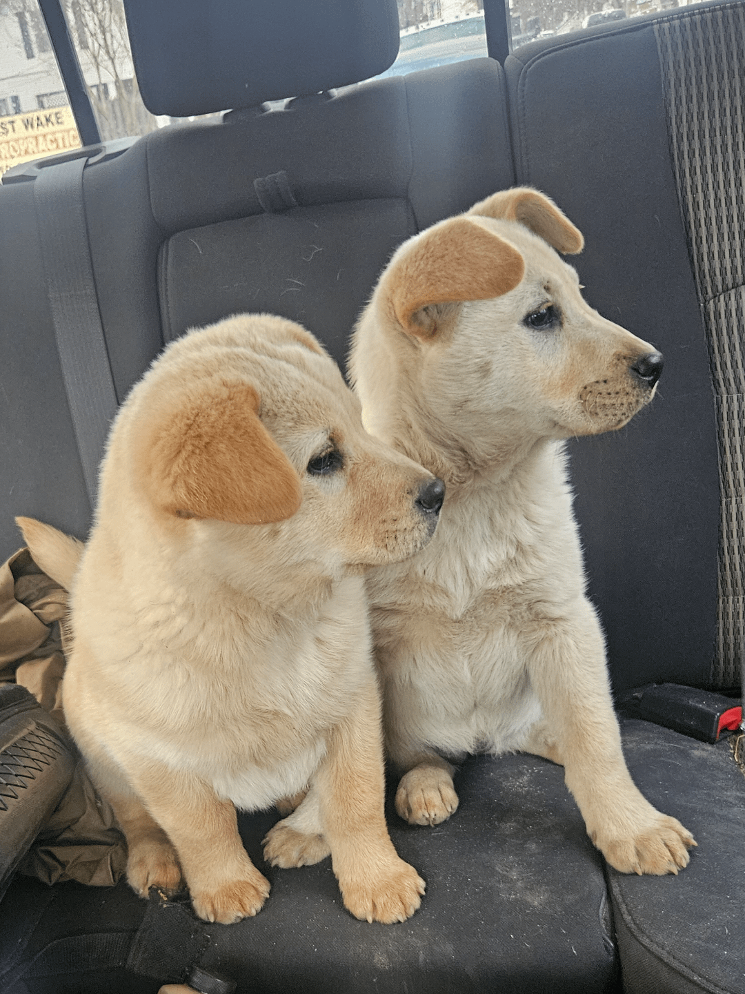 We saw on Facebook that someone had dumped these 2 babies infront of someone's house. So my wife called me while I was running errands to get ready for this ice storm thats coming and asked me to go get these puppies. I went by foodlion got some chicken deli meat to get them to come too me. And now we have to new puppers. So of course we had to name them after some kraken players, we went with Mattie(beniers) for the fluffy one and the other is mellie(melanson).
