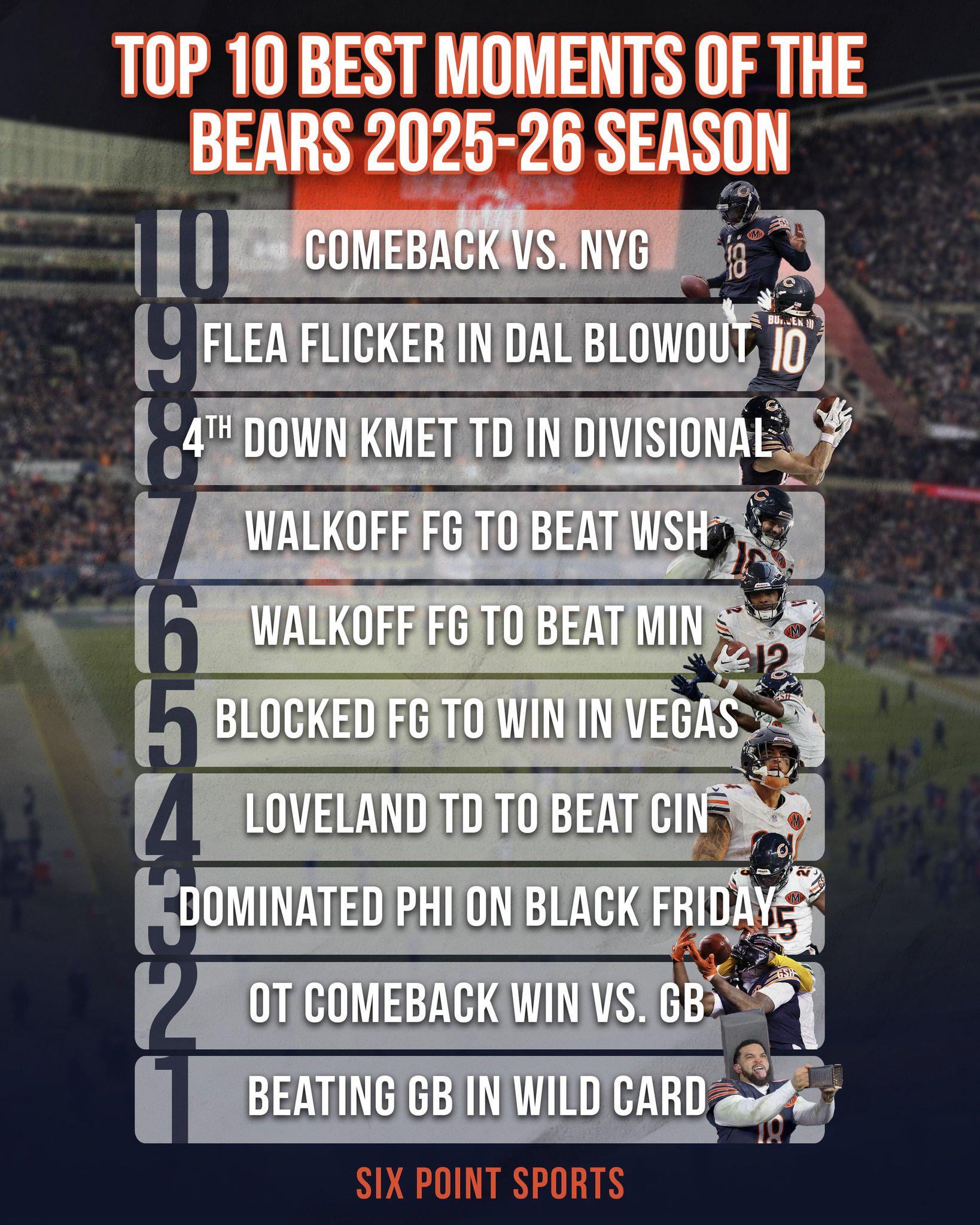[Six Point Sports] Obviously hiring Ben Johnson was a moment that changed it all, but here’s our top 10 moments for the Bears 2025-26 season to remember 🐻⬇️ The future is bright, Chicago!