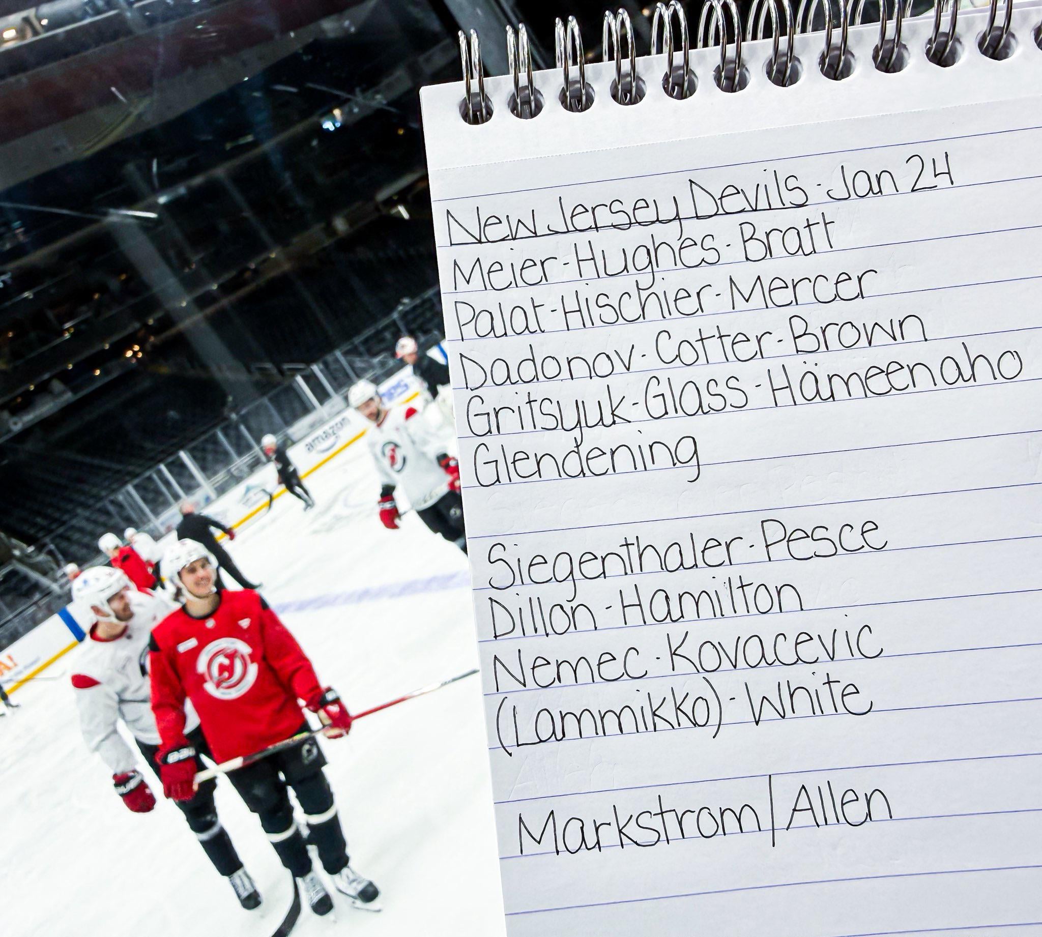 [Stein] If it ain’t broke, don’t fix it. Here’s the #NJDevils lineup from practice today, a day before a matchup with the Kraken in Seattle.