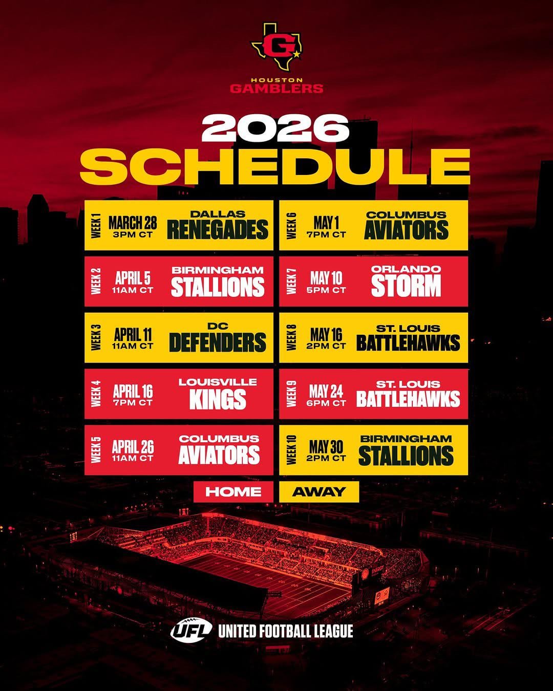 Here is their schedule that was just released on last Friday. Interesting, they have home games on Easter (April 5 at home vs. Birmingham Stallions) and Mother’s Day (May 10 at home vs. Orlando Storm). That could start a new tradition for Spring-season professional football much like Thanksgiving and Christmas for the NFL seasons.