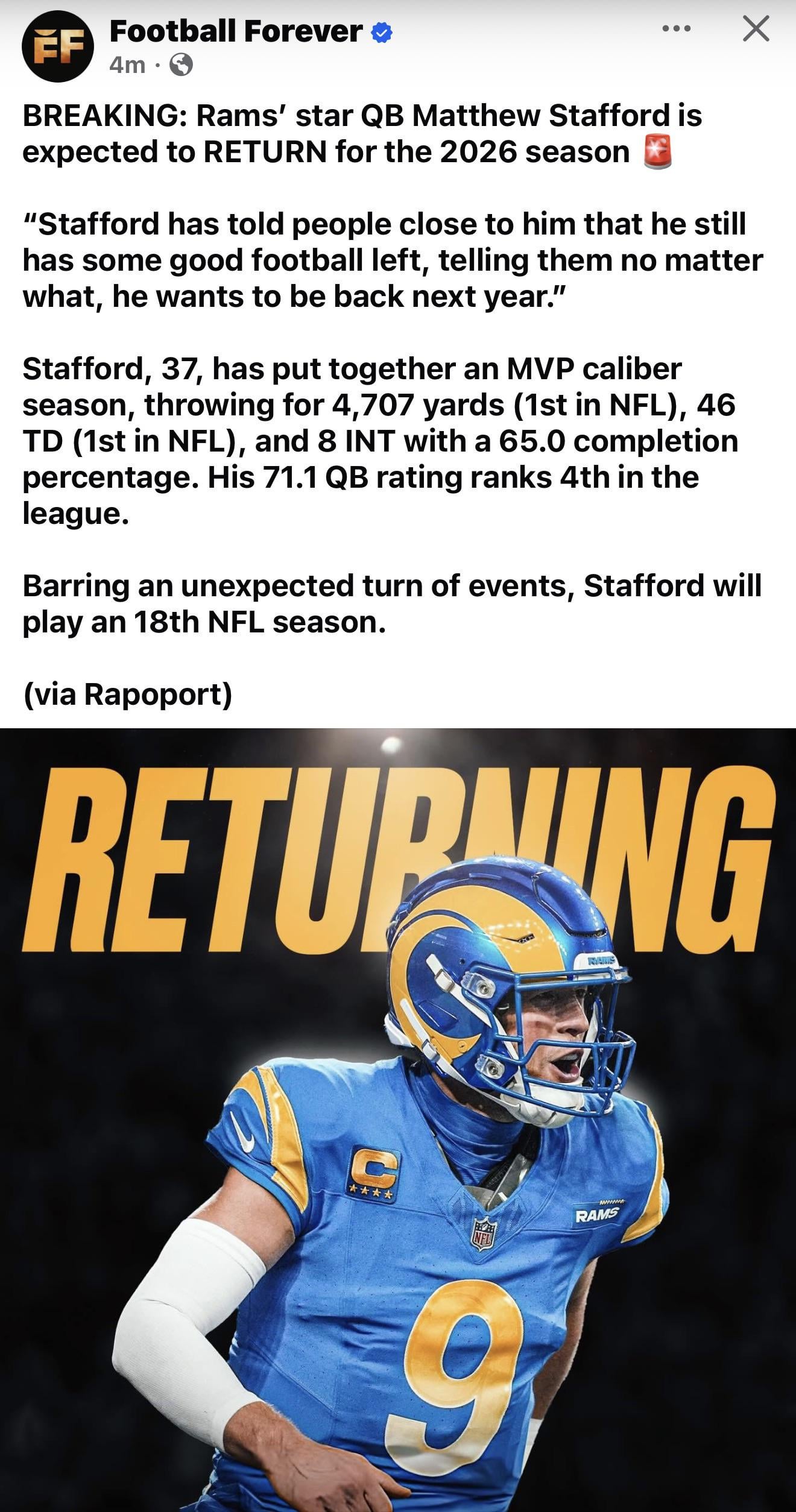 Also Stafford legitimately loves football. Seems like the type who will walk away when he can’t play anymore.