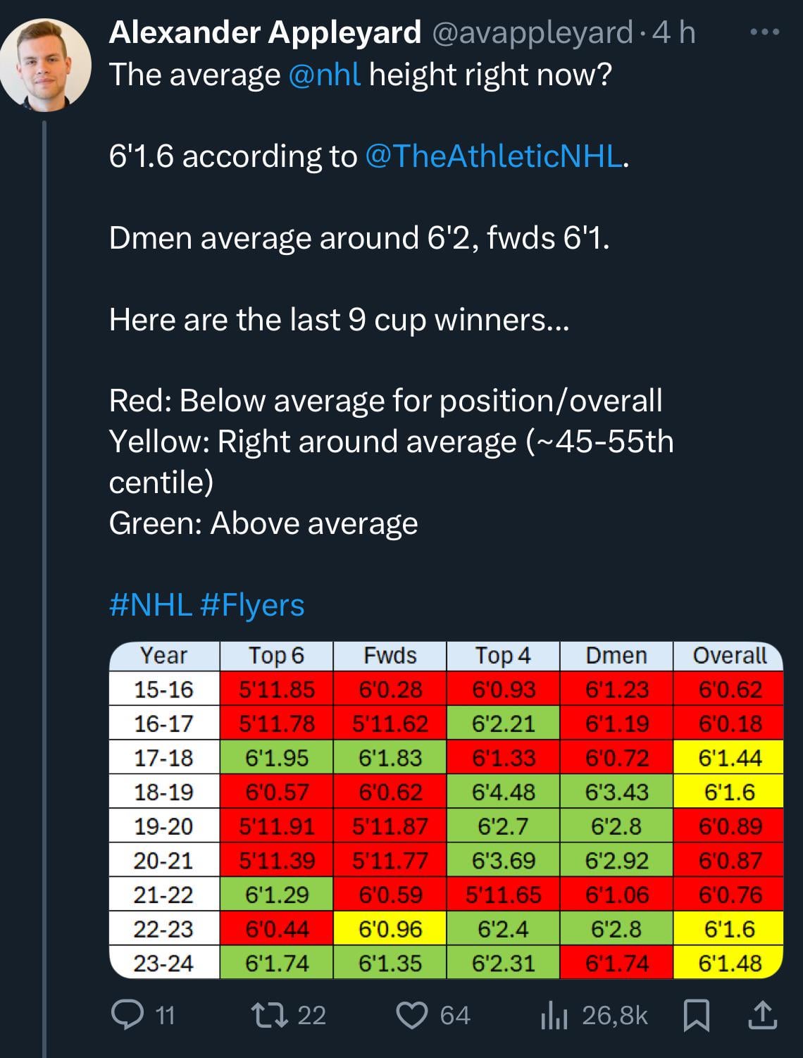 According to this, big teams don’t win the cup anymore. Kings are currently the largest team by height in the NHL.