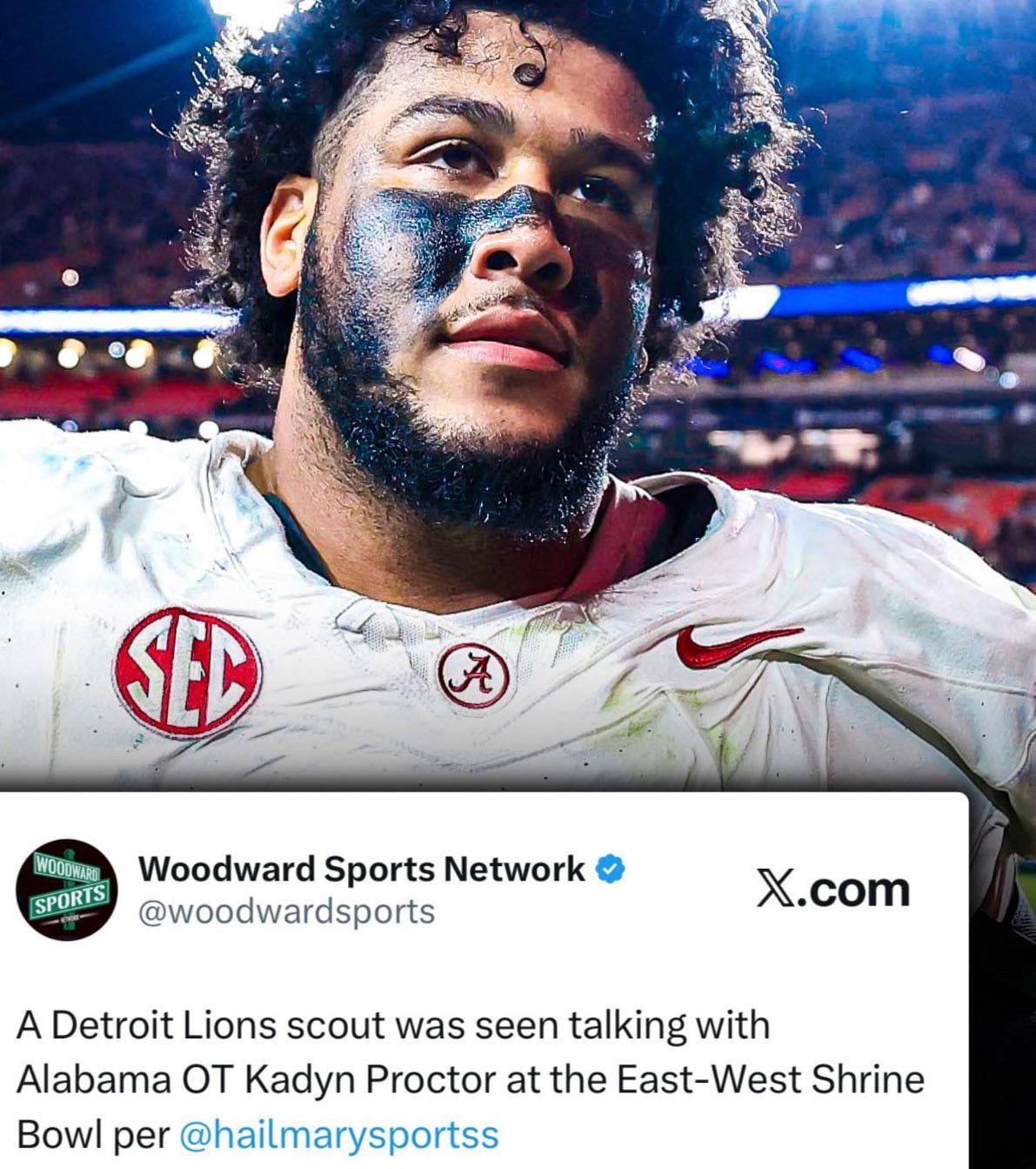 A Detroit Lions scout was seen talking with Alabama OT Kadyn Proctor at the East-West Shrine Bowl