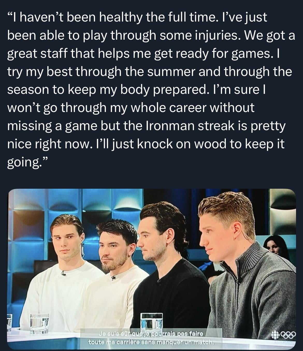 Habs captain Nick Suzuki on playing 507 consecutive NHL games